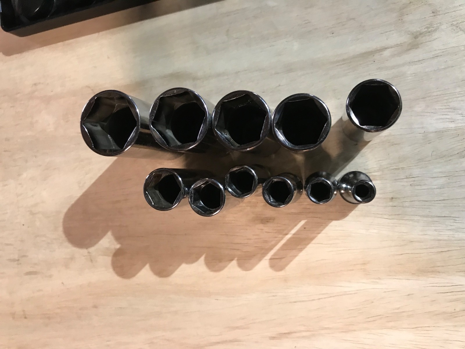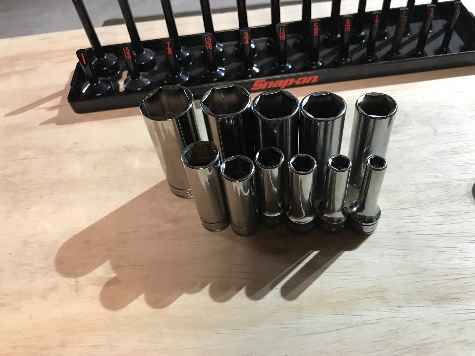 Up for sale is a Snap On 22pc deep and shallow socket set with tray all in great condition and look unused see pics Please read Snap-On, Mac & Matco tools as they are the manufactures of the tools I make no claims as to warranty and do not represent the manufactures in any way. The Snap-On, Mac & Matco names and model numbers are used only to verify the maker and to identify the tool itself as being authentic. Please look at all photos closely as pictures are part of the description. If you have any questions on the item listed or shipping, please contact me first via email. Be sure to add me to your favorites list!!! ~Check out my Feedback, Sale Items & other Auctions~ ~Thank you for viewing my items~