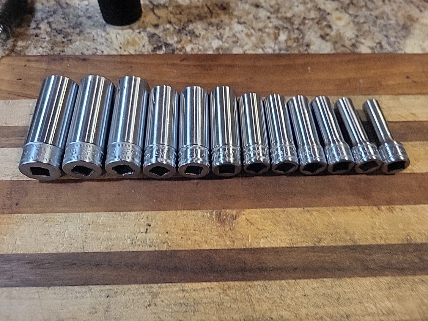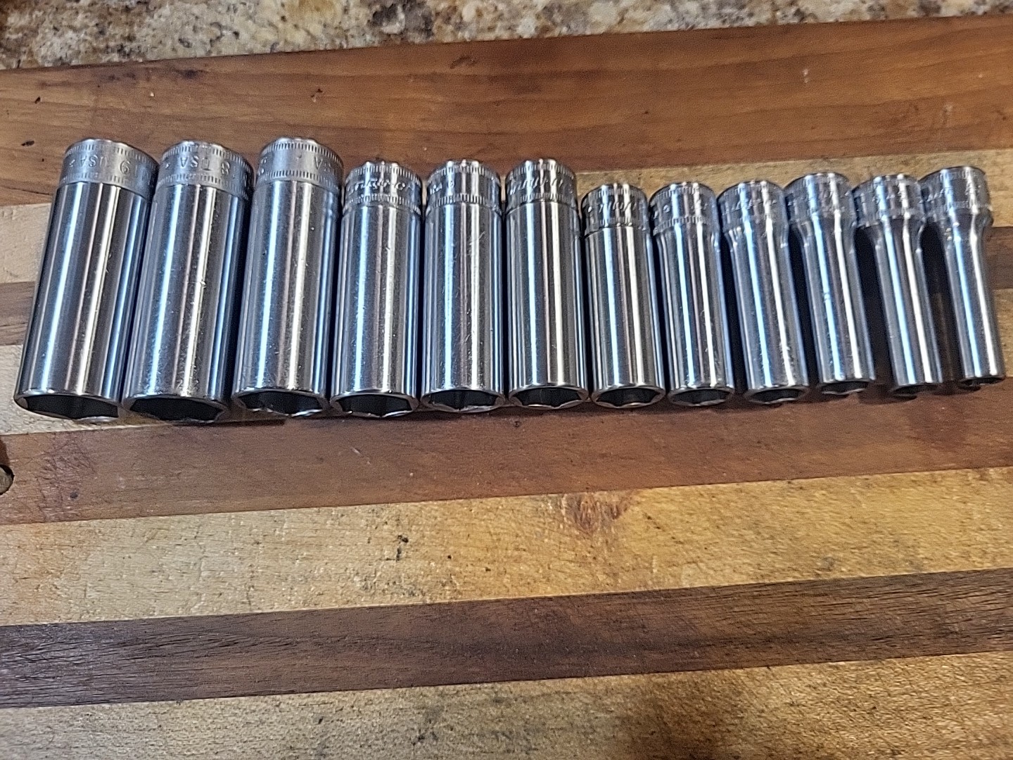Snap On Tools 212SFSMY 12 Piece 3/8" Drive Metric Deep 6 Point Socket Set 8-19mm. These are in Good Used Condition.🔥 Made in the USA 🇺🇸! Please refer to pictures.