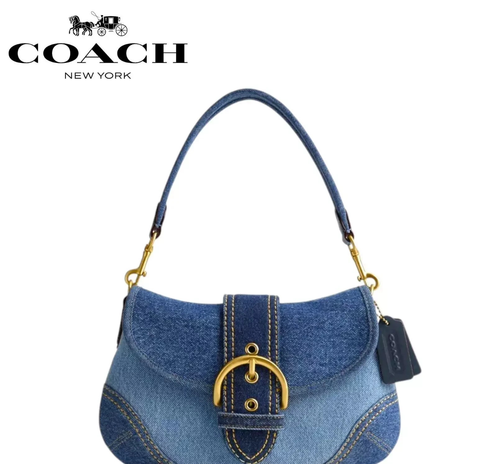 COACH Soho Shoulder Bag Upcycled Repurposed Denim Blue CR737 outlet