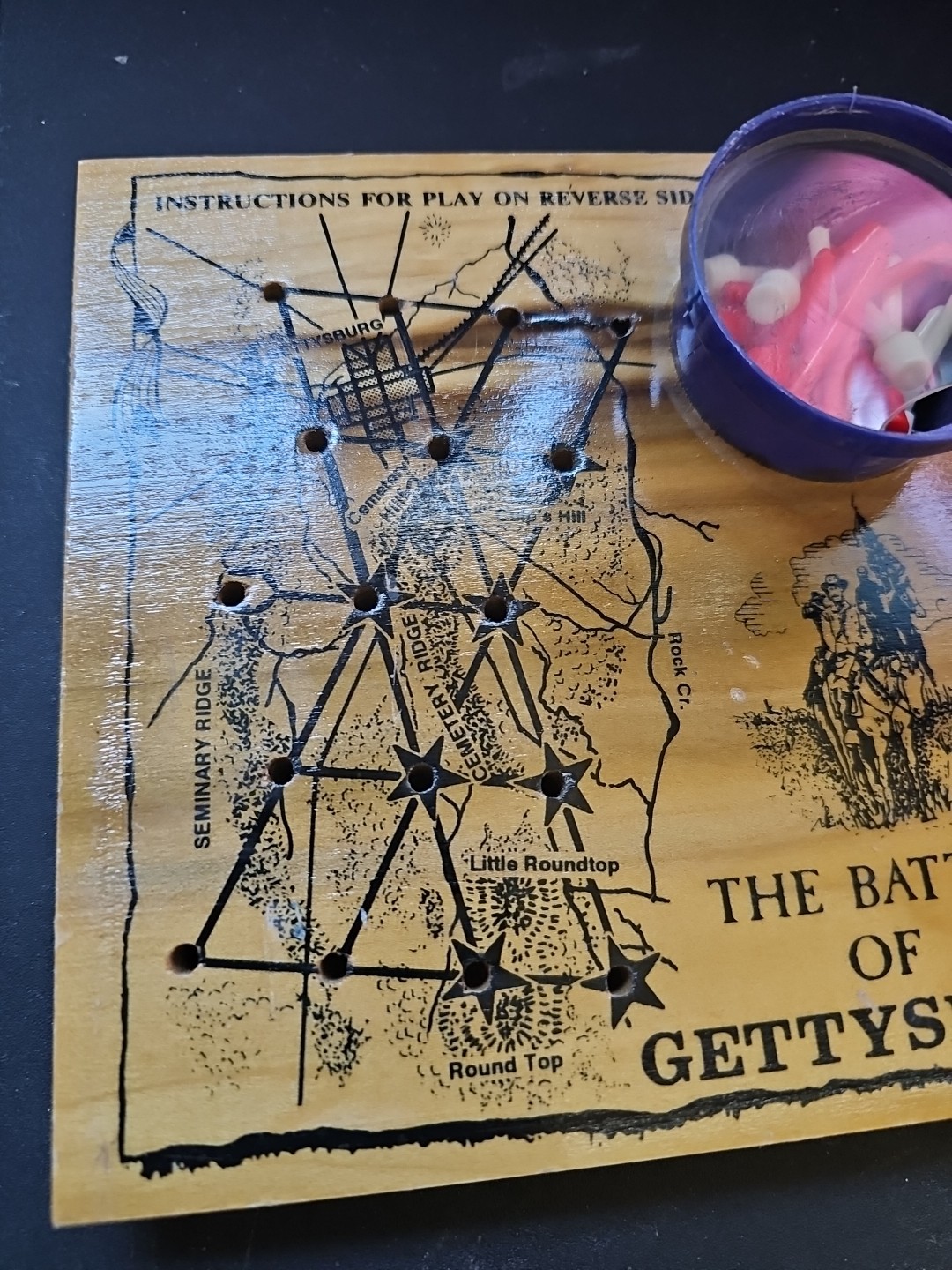 Used VTG The Battle of Gettysburg Wooden Pin Board Made in USA Made 1991
