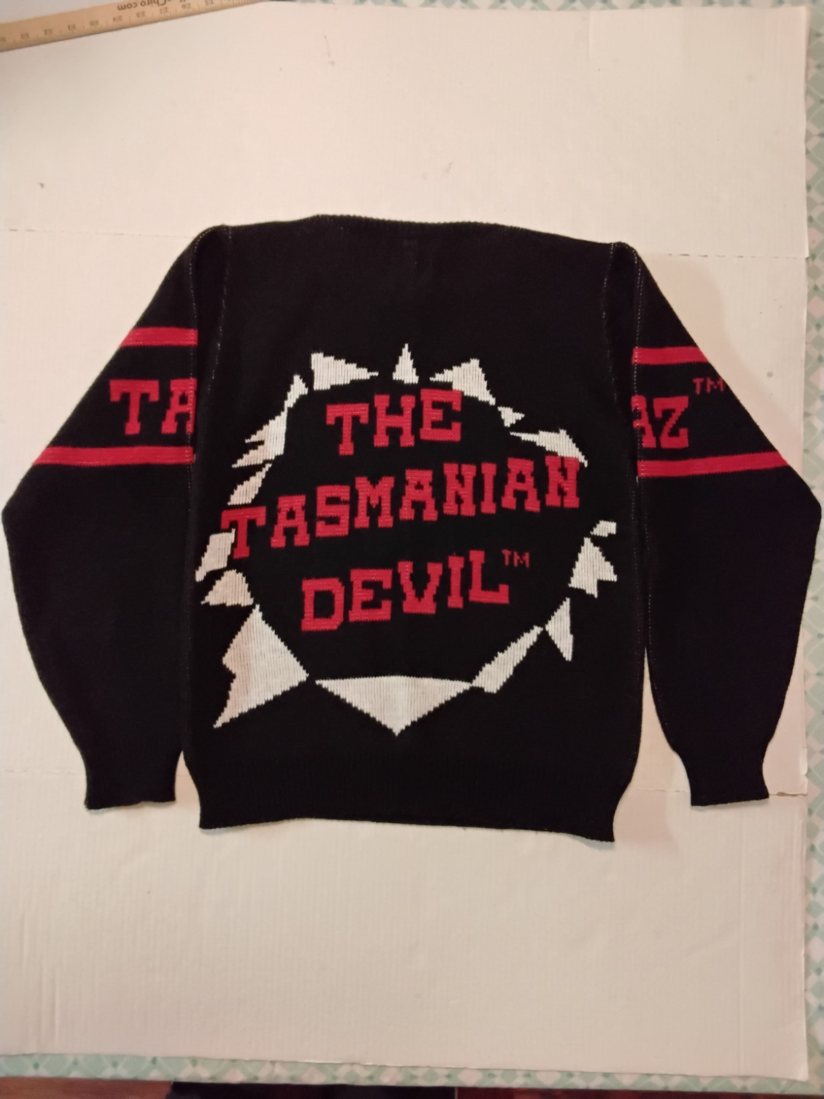 VTG 80s Looney Tunes Tasmanian Devil Knit Sweater Adult Medium Made In U.S.A Taz