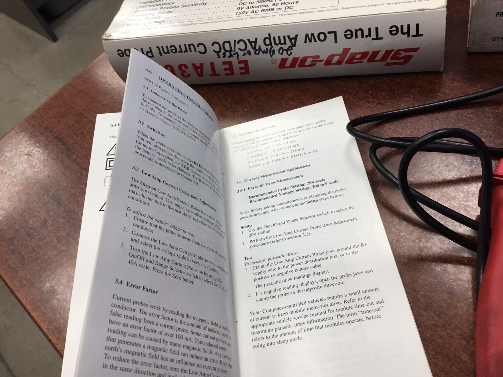 USED Snap-On Tools Low Amp Probe Set w/ Booklet and Cable EETA-308A SnapOn