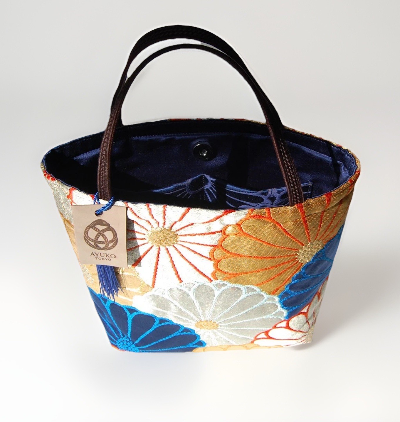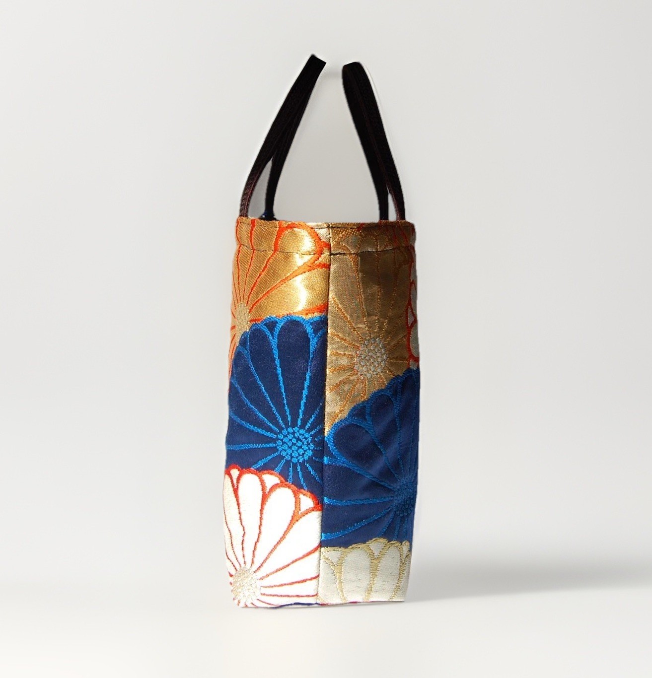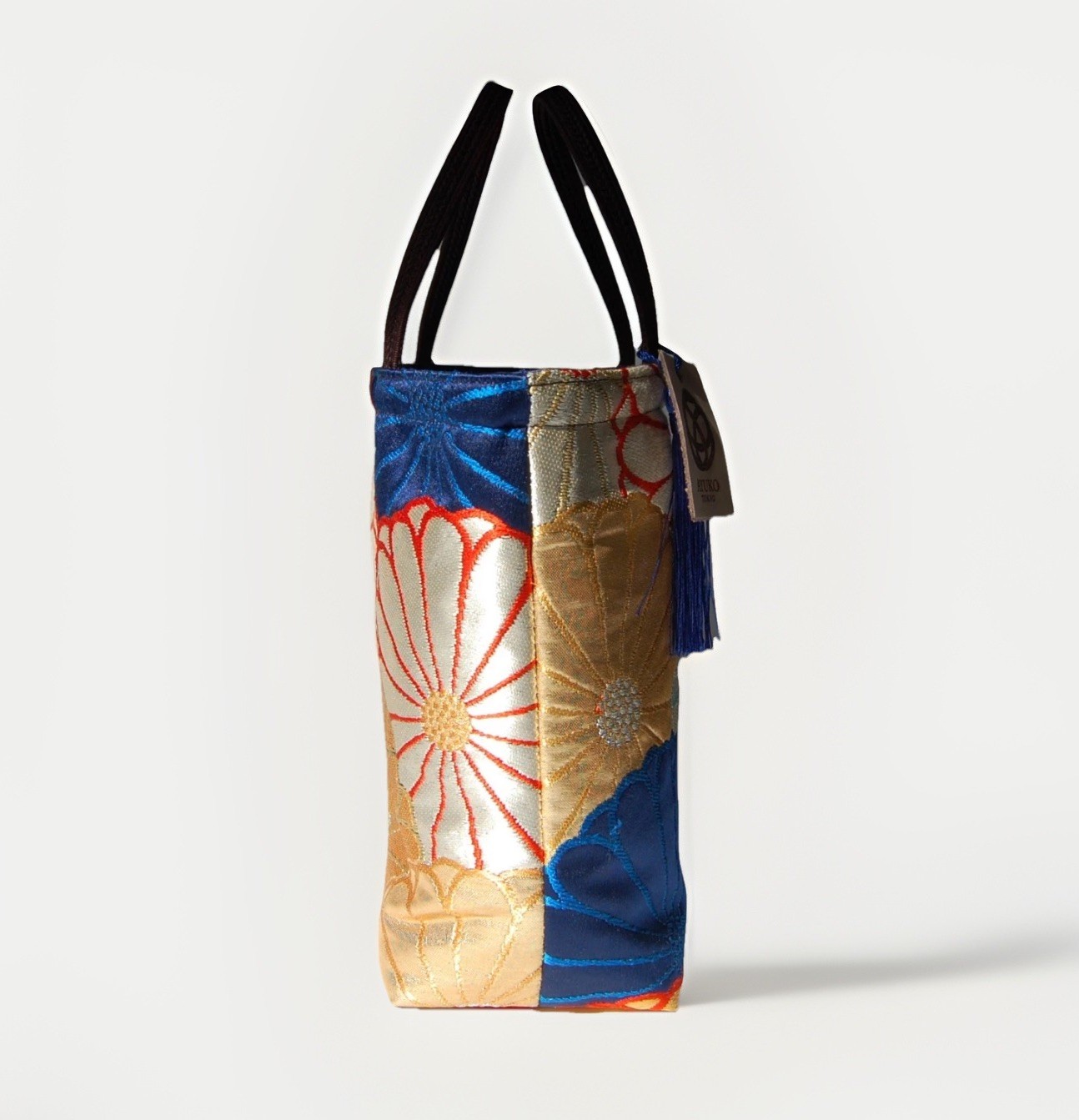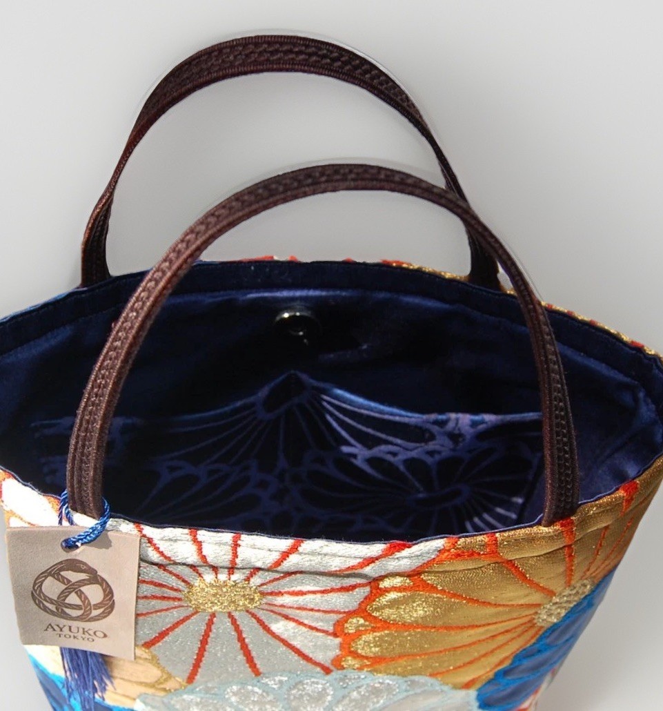 🌸 Why It’s Special • 100% silk fukuro obi – Upcycled from vintage formal kimono sashes with rich gold and silver embroidery. • Thoughtful interior detail – The inner pocket features a woven chrysanthemum motif that subtly echoes the outer fabric’s full chrysanthemum pattern, creating a quiet sense of continuity. • Japanese elegance, reimagined – The subtle dignity of iki (粋) meets everyday practicality. • Functional craftsmanship – Expertly handcrafted by a Japanese artisan who has been crafting bags for almost 30 years. • Truly one-of-a-kind – Each bag is handmade from a vintage obi that will never appear again, making every piece uniquely irreplaceable.
