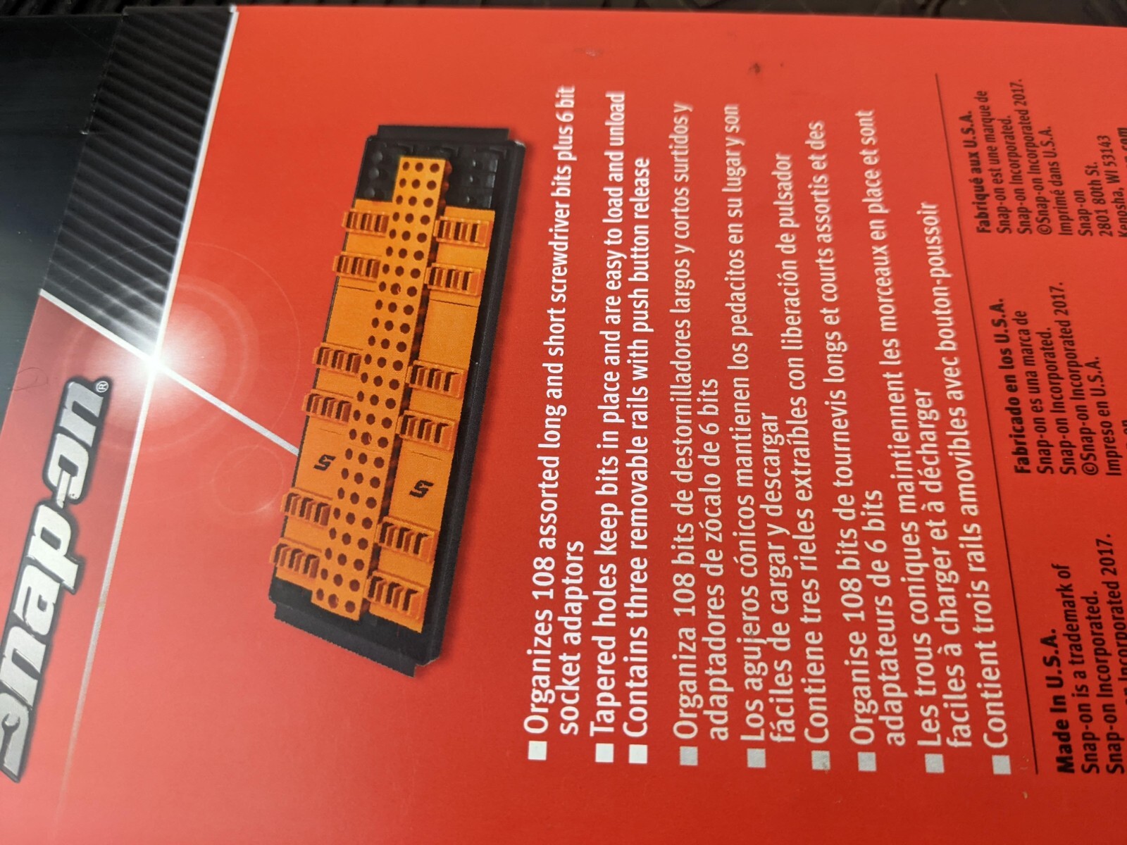 #at128 NEW Snap On 3 Row 108 Tool Bit Boss KABITR3L13OR In Orange