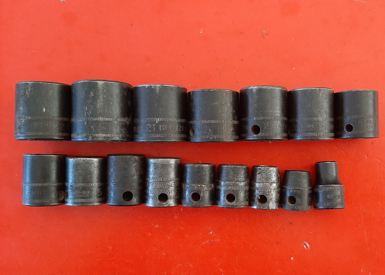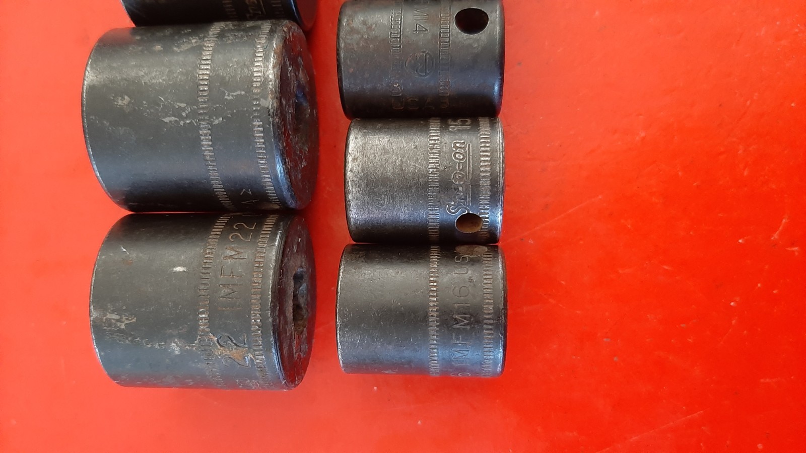 Used, showing wear, a few different years here, the 8mm is slightly taller than the rest of the smaller sockets. Please see all photos