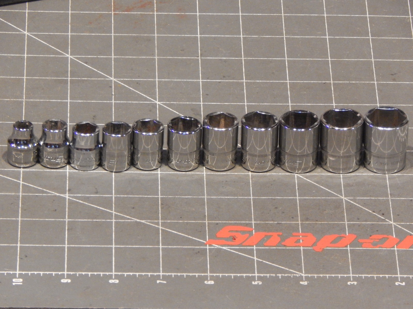 Snap On 11 OF 12Pc Metric 3/8 Drive Shallow Socket Set 8MM 19MM 6Pt NO 9MM Tray