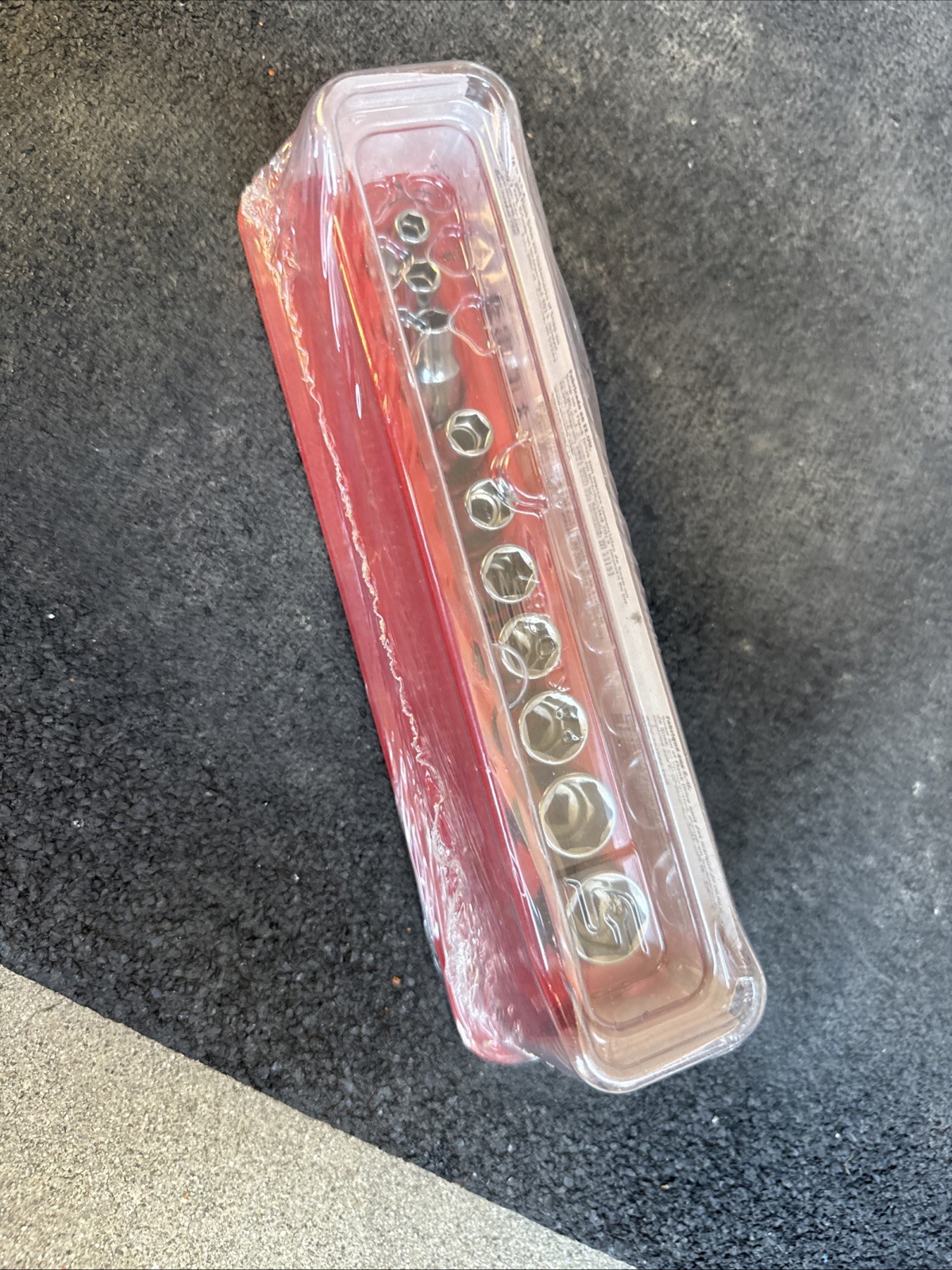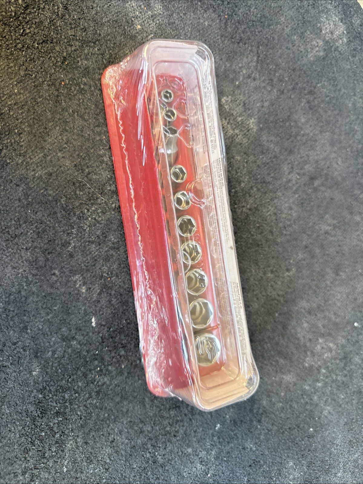 The product is a Snap-on Tools 1/4" Drive SAE Shallow 6 Point Chrome Socket Set, featuring 10 pieces ranging in size from 3/16in. to 9/16in. These high-quality sockets are manufactured in the United States and come with a chrome surface finish. The sockets are designed for standard SAE measurements and are perfect for automotive maintenance and repair. Snap-on is a trusted brand known for producing durable and reliable hand tools, making this set a valuable addition to any mechanic's toolbox.no warranty new