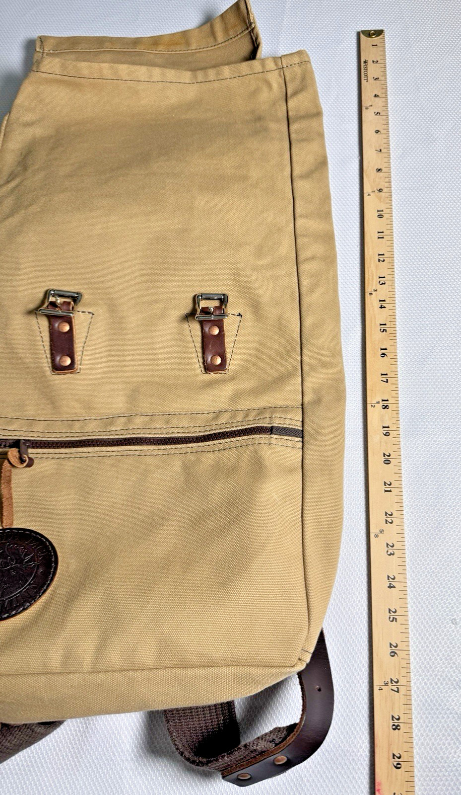 Extra canvas length to roll your pack close to optimally secure your goods at whichever height desired. 22" total height.