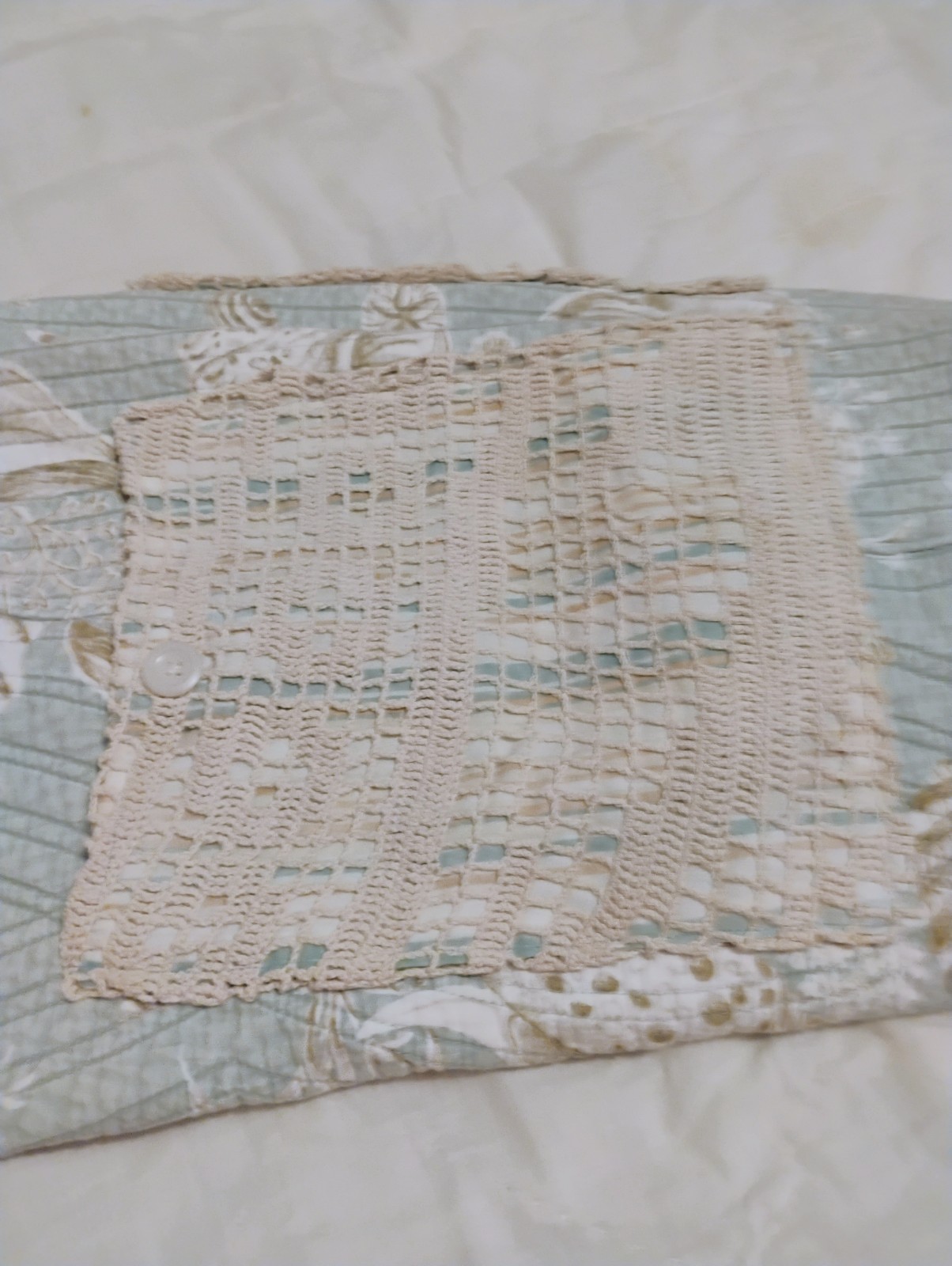 These handmade quilted pants are perfect for a cold day . medium size fit for women. Made from cotton blend material, the pants feature a drawstring closure, flat front, and wide-leg style. The blue and light green with a ocean theam print. quilted design adds a unique touch while the cargo style with pockets is both practical and stylish. Ideal for the summer, fall, and spring seasons, these pants offer a personalized and one-of-a-kind look for your wardrobe.