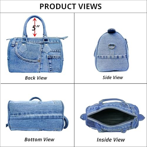 Upcycled Denim Material: Handmade from repurposed denim jeans, each bag is one of a kind. Variations in denim tone, wash, stitching, and fabric panels are natural and expected.