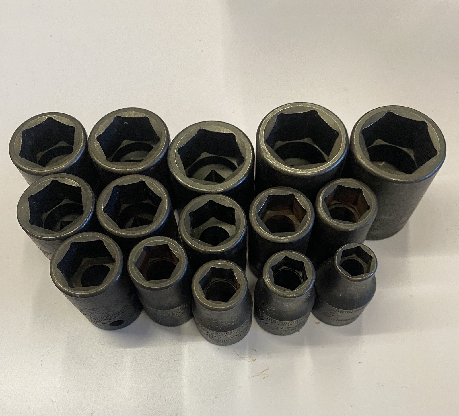 Snap-on Tools 1/2" Drive Metric 6pt Shallow Impact Sockets 15 pc 10mm-24mm.