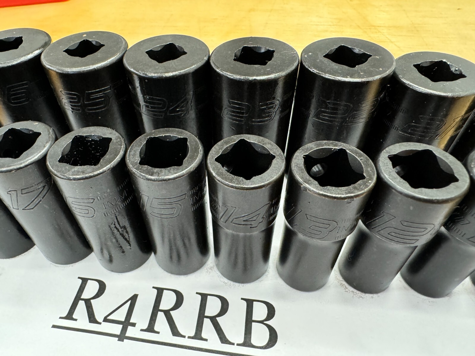 Snap-on Tools USA NEW 18pc 1/2" Drive Metric 10-27mm SEMI DEEP Impact Socket Set