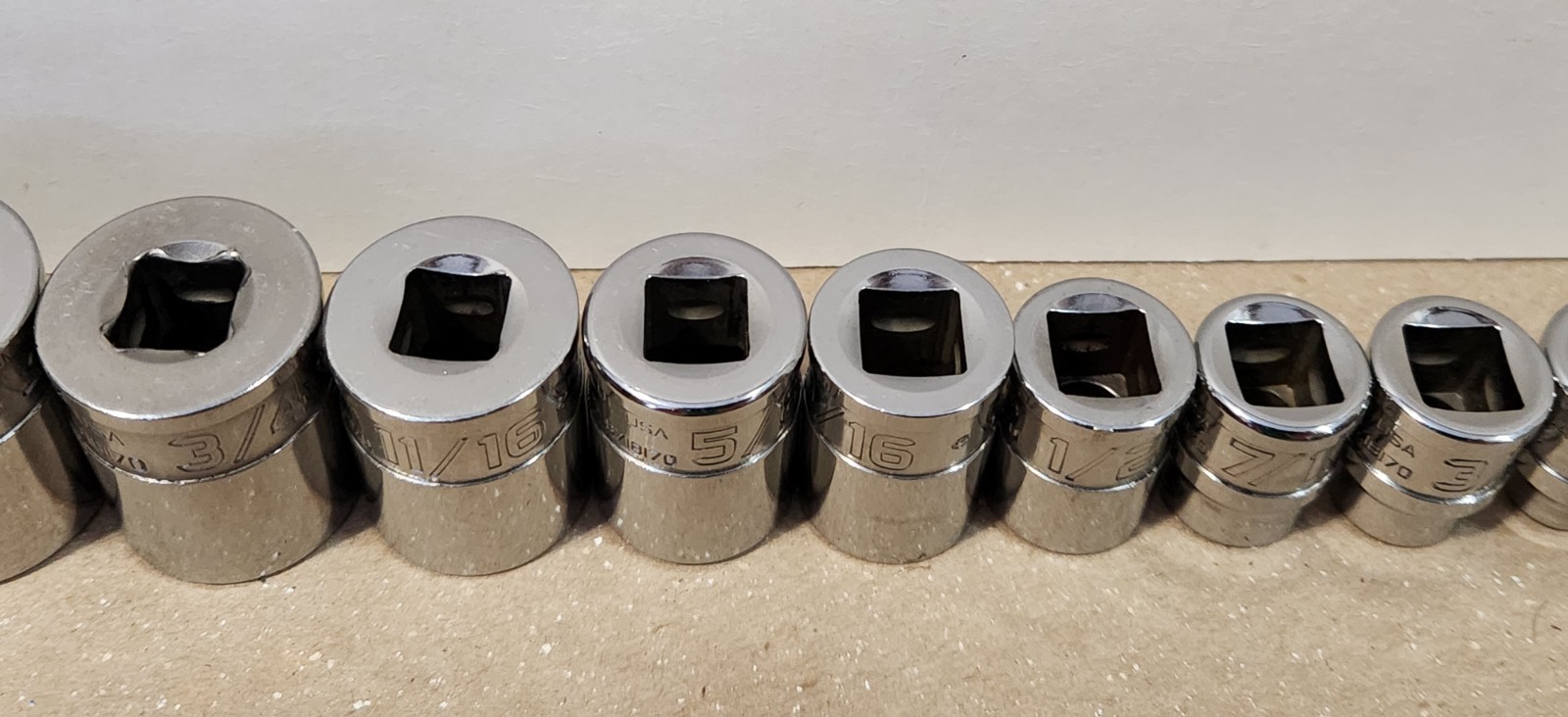 Snap On 211YFSY 11pc 3/8" Drive 6 Point SAE Flank Drive Xtra Shallow Socket Set