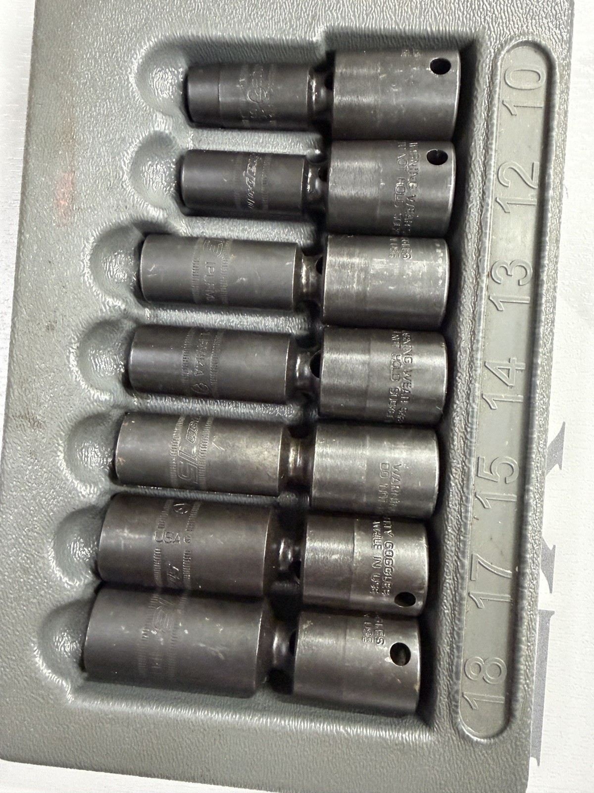 SNAP ON 3/8" DRIVE 8 PC 6PT METRIC DEEP IMPACT SWIVEL SOCKET SET