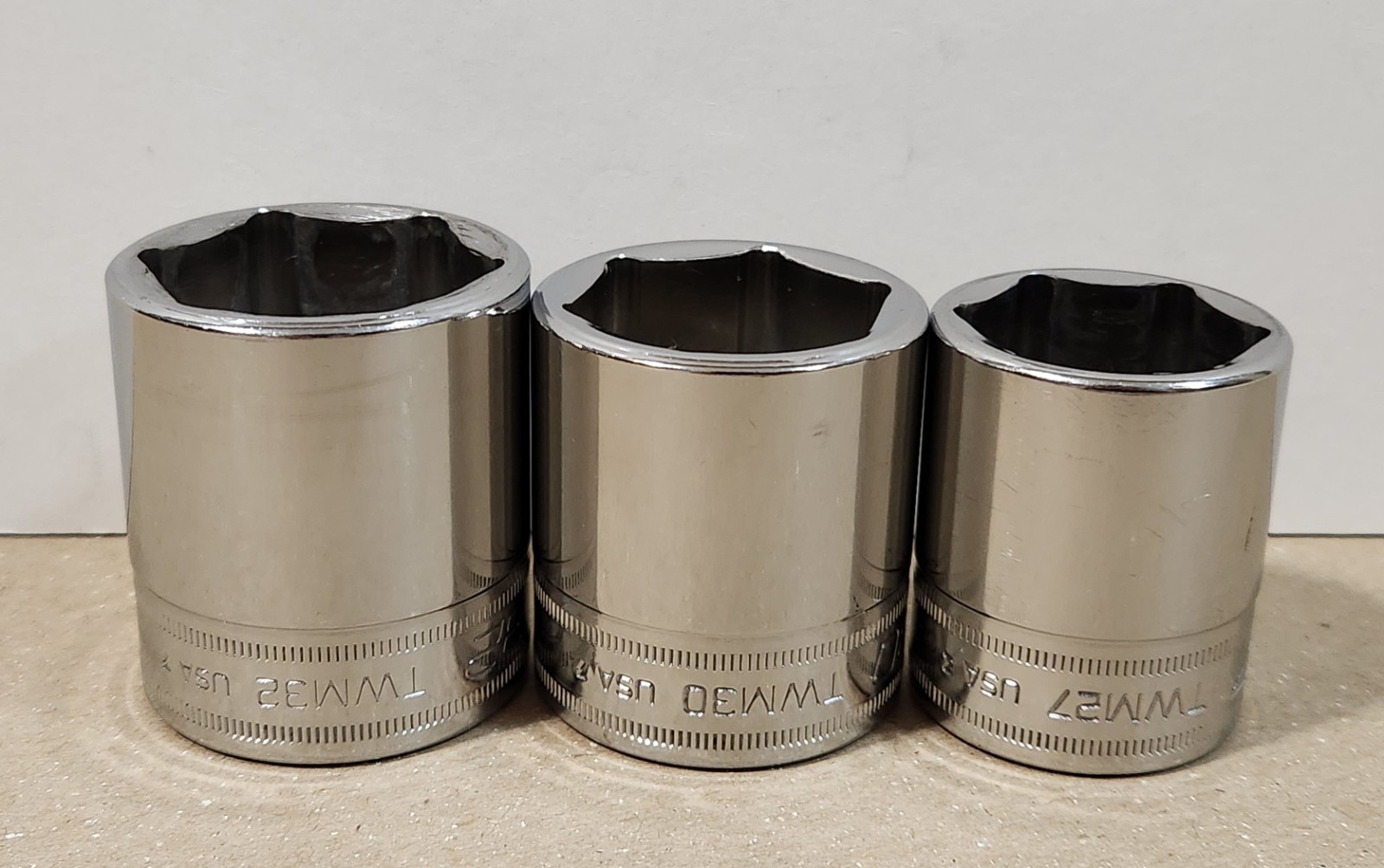 Snap On TWM27 TWM30 TWM32 3pc 1/2" Drive 6 Pt Metric Flank Drive Shallow Socket