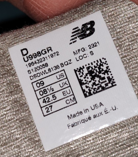 This listing is for a nice pair of new without box New Balance 998 gray made in USA running shoes. These are size men's US 9 D or EURO 42.5. Please Check out the pictures.