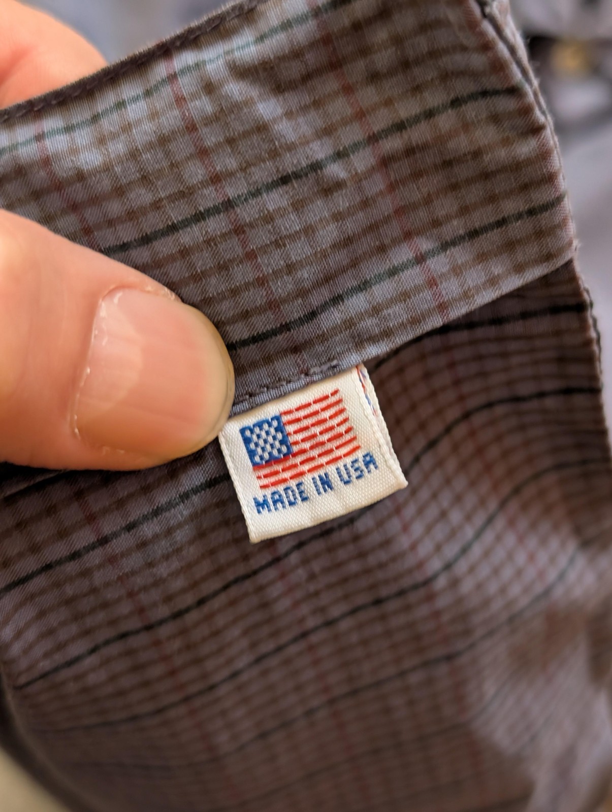 Brand: Steven Alan Item: Long sleeve button-front shirt with button-down collar and single chest pocket Tag size: XXL (Mens 2XL) Color: Gray with subtle red and green micro-check plaid Material: 100% Cotton; lightweight and breathable Country of Origin: Made in USA Care on tag: Machine wash cool; tumble dry medium Labels/IDs shown: Steven Alan main label; Made in USA tag; fabric/care tag (RN and CA numbers visible) Features: Buttoned cuffs; curved hem; classic casual-to-office style Notes: Please compare to a similar shirt you own for best fit. The No-Nonsense Satisfaction Pledge: Hassle-free returns—if it doesn’t work out, no problem. Fast, reliable shipping—you won’t be left wondering where your order is. Carefully inspected items—what you see is what you get, no surprises. Transparent communication—questions? Just ask! Size & Fit:Check the measurements in the pictures to ensure a great fit. We want you to feel confident with your purchase, but if it doesn’t work out, returns are hassle-free and on us. Why Buy Here? We understand how frustrating it can be to overpay for gear that doesn’t meet expectations. That’s why we carefully inspect each item and offer fast shipping, so you’re not left waiting. Our goal is to provide top-quality gear at a price that makes sense—without the runaround. Multi-Item Orders: Need more than one shirt? Let us know! We'll combine shipping and help you save even more. International Customers: While shipping fees are beyond our control, feel free to send an offer, and we'll do our best to work something out. About My Shop: From Brooklyn to your doorstep, I source high-quality clothing that makes you look good and feel even better. With years of experience and thousands of satisfied customers, I'm here to help you get the gear you need without the hassle.