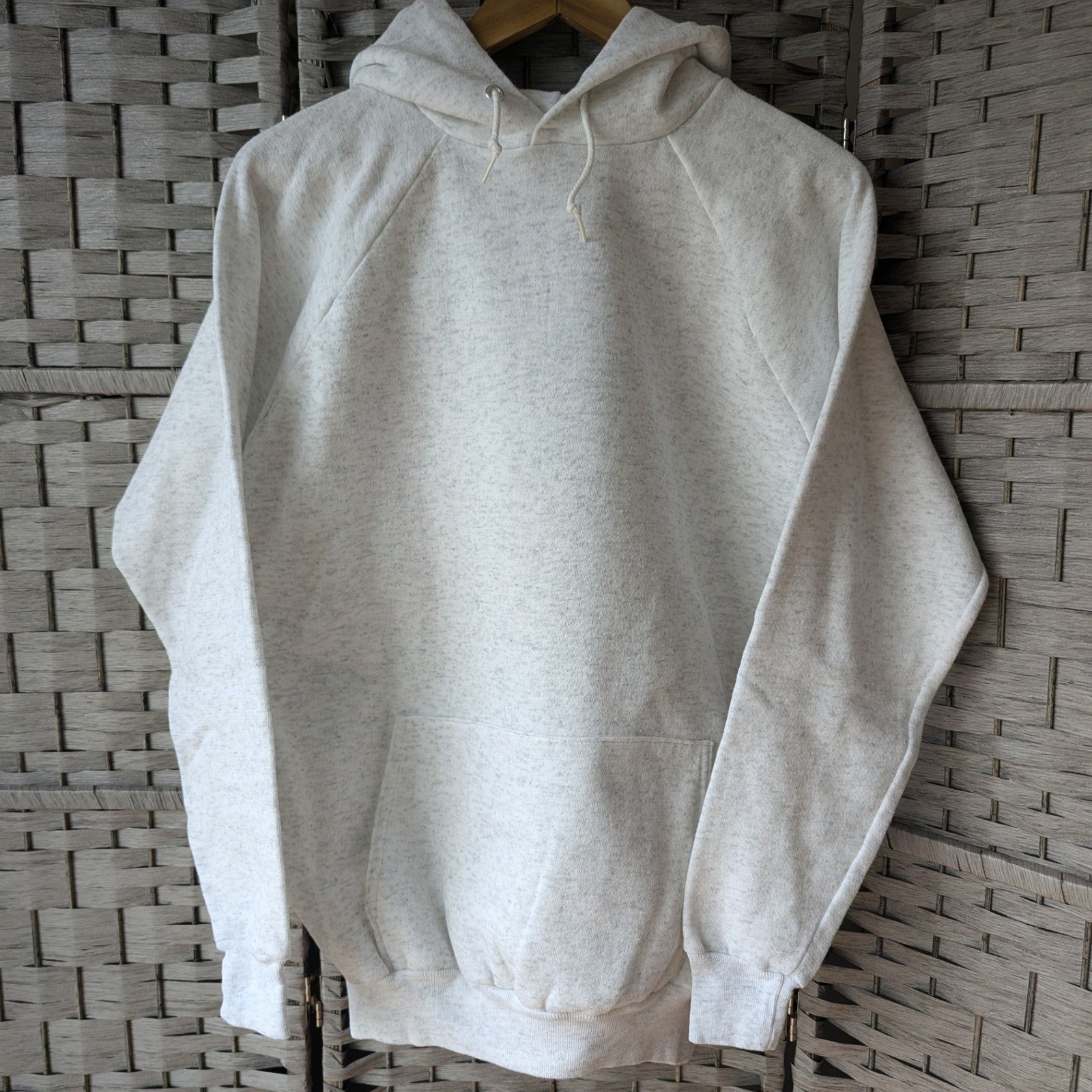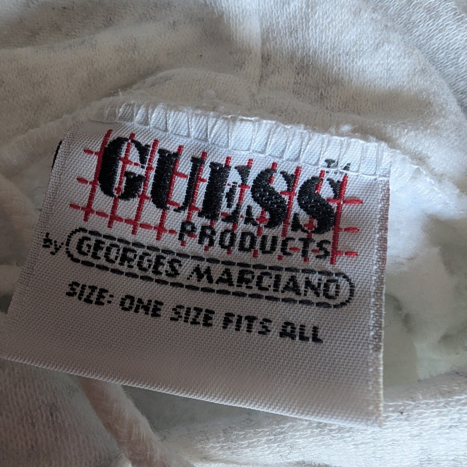 Vintage Guess by Georges Marciano hoodie in a light grey heathered finish, featuring a bold American flag graphic on the back with "GUESS U.S.A." branding. This classic streetwear piece offers a relaxed fit with raglan sleeves, a spacious kangaroo pocket, and a drawstring hood. Made in the USA from a soft cotton-blend fleece, it captures the iconic 90s aesthetic with its oversized silhouette and high-quality construction. Mint condition! Looks unworn. Measurements are in the photos.