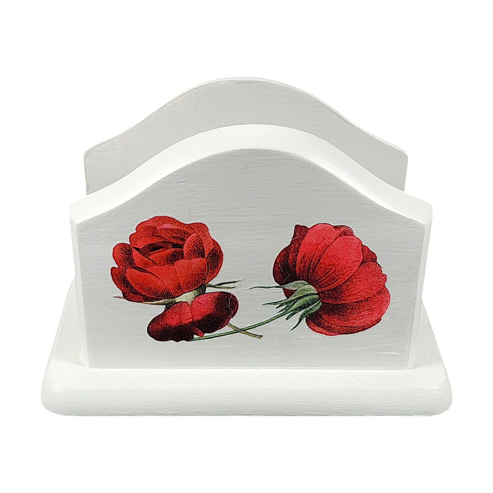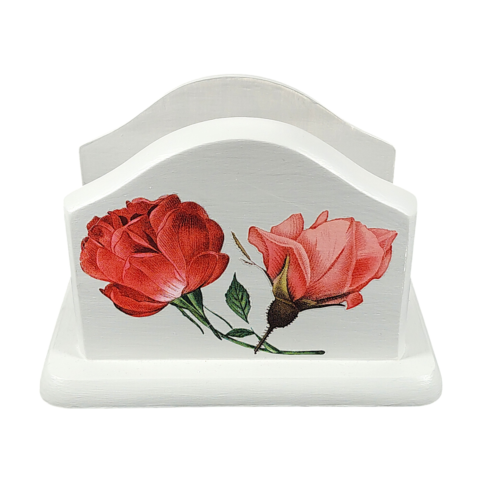 Upcycled Rustic Decoupage Roses Floral Wooden Napkin Holder