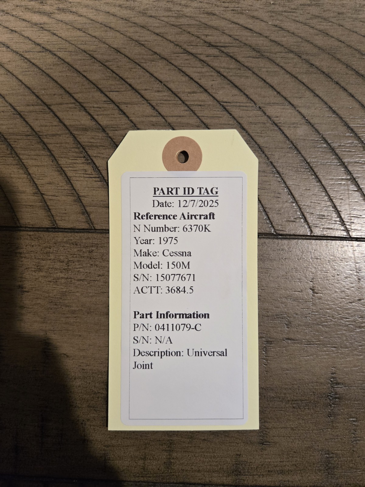 As removed from Cessna 150M (S/N: 15077761). Item pictures may not be exact one received since there are multiple for sale.