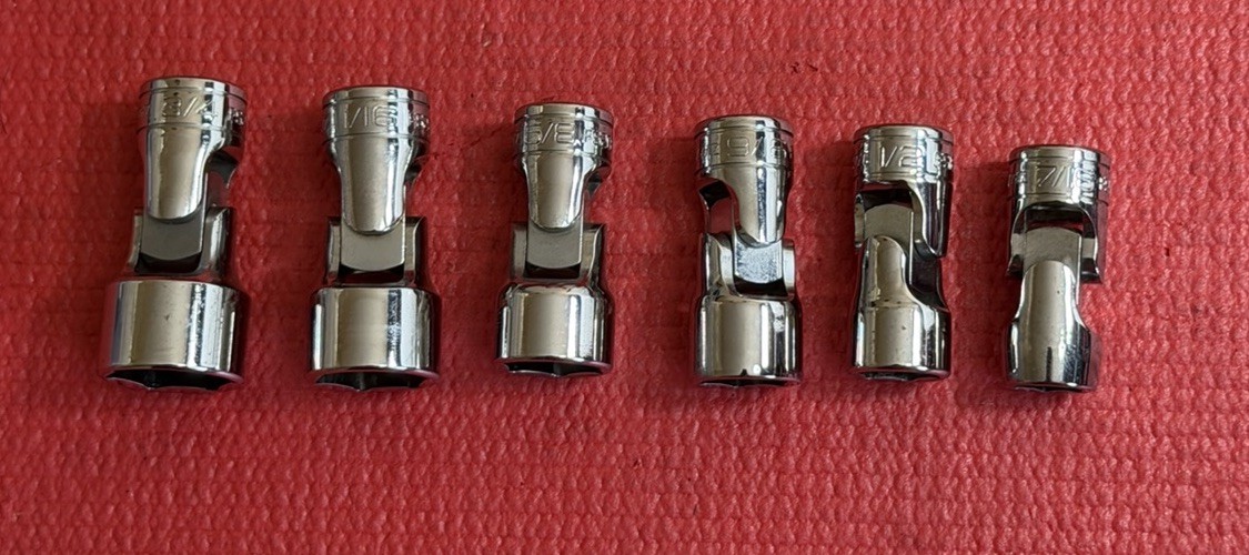 Snap On Tools 6pc Set 3/8" Drive Swivel Universal Socket SAE Wobble 6-Point USA