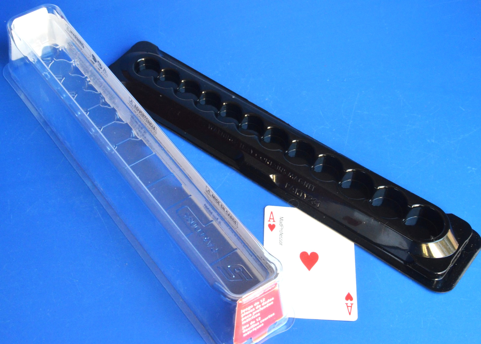 Snap-on tools Plastic Storage Tray PAKTY231 for 12 piece 3/8" drive Deep Impact socket set 212FSMY in new, unused. It includes cover PAXLD085. This tray has space for 8mm thru 19mm sockets. (not included) If you want to use the cover, then it should be able to be used with deep sockets as well.