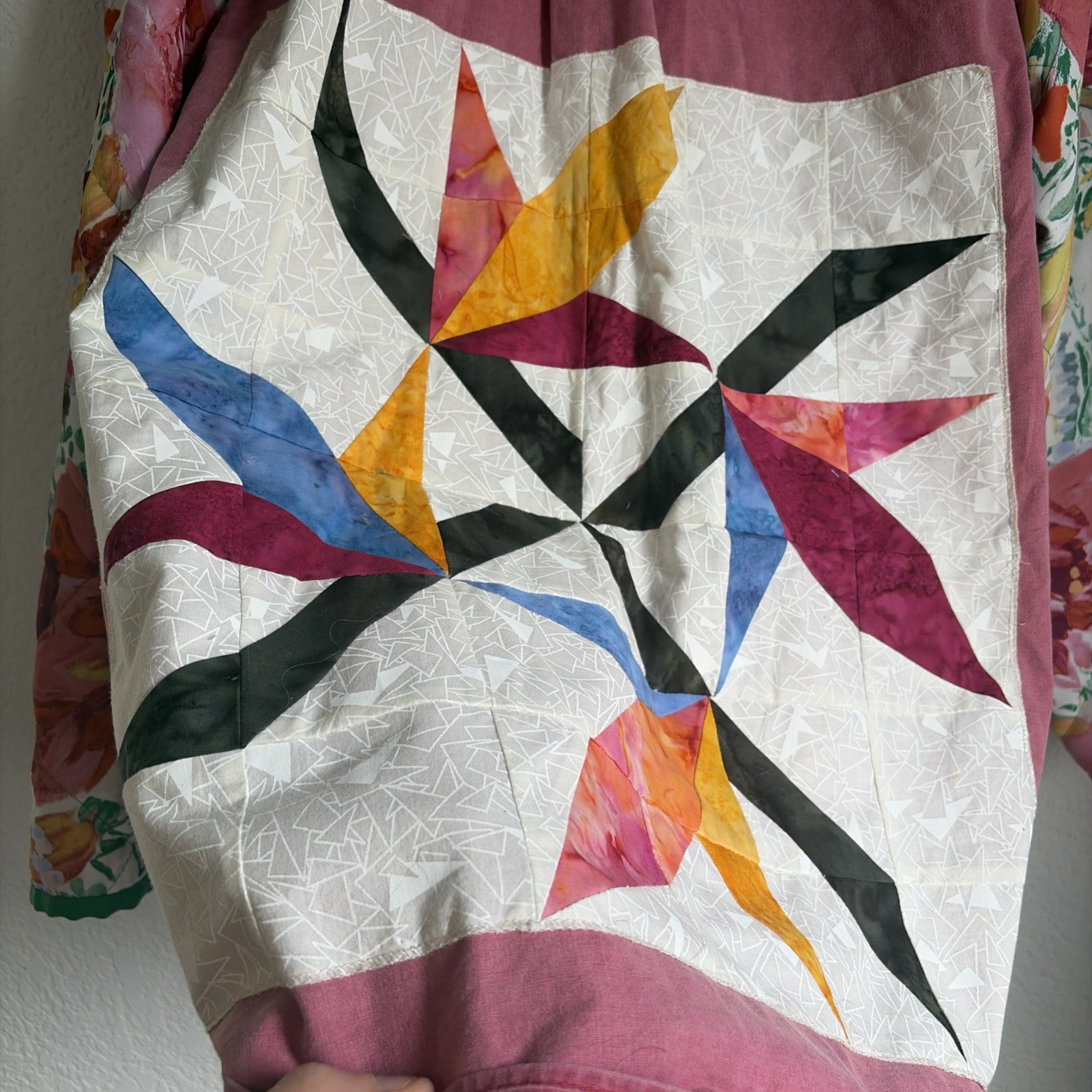 Vtg Upcycled Slow Fashion Paint Splat Artist Smock Quilt Sleeve Shirt L Great NW