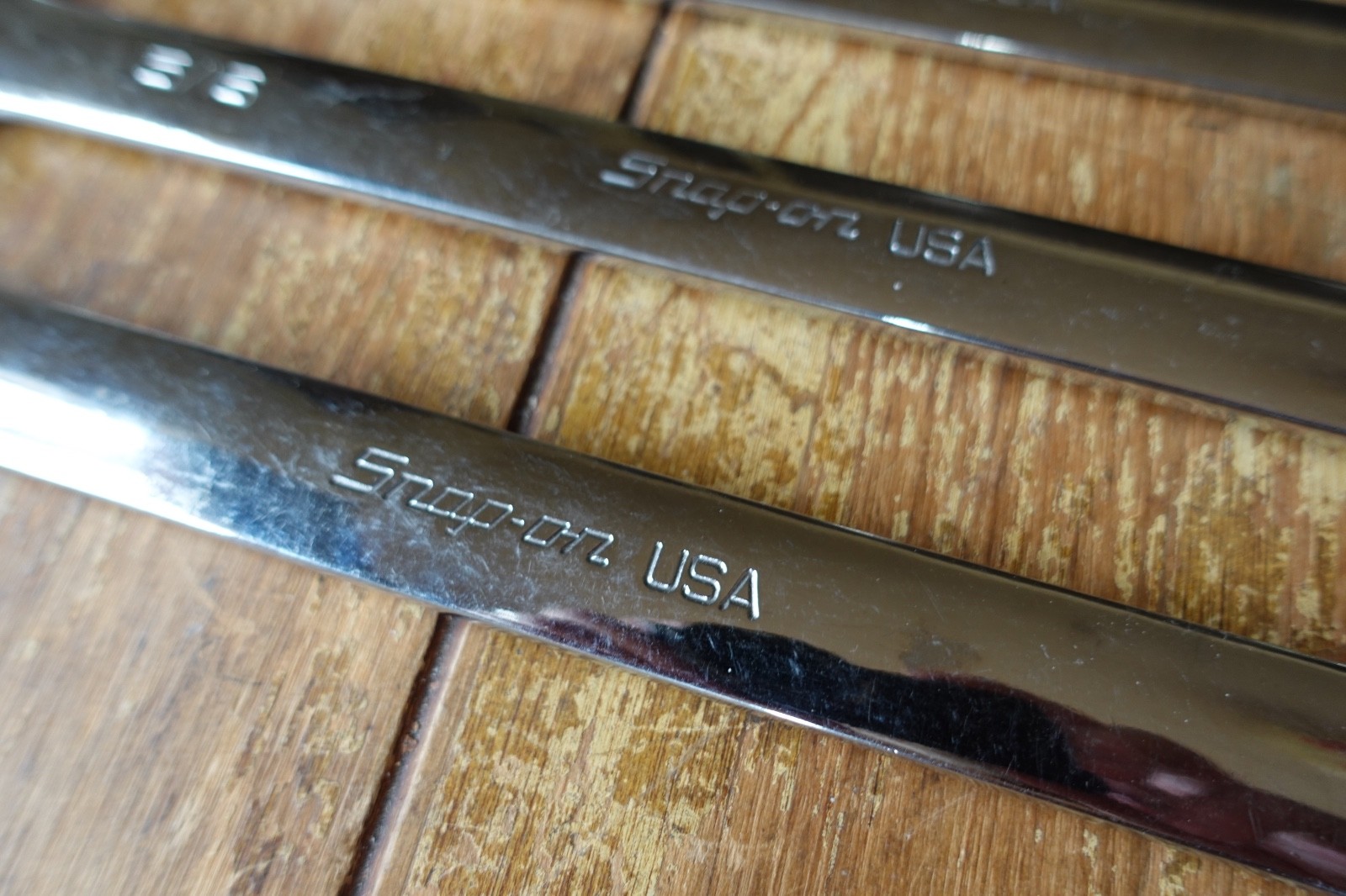Set of Snapon open end box wrenches. Sizes 3/8ths to 1 inch. No names engraved on wrenches. See pictures. Shipping in the lower 48 states is $10.00 dollars