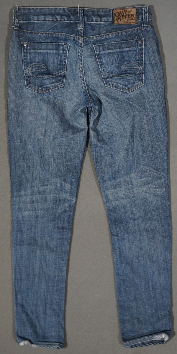 GENDER: FEMALE MAKER: CHIP & PEPPER MODEL: MADE IN U.S.A. DETAILS: * STYLE#: UNKNOWN * COLOR: BLUES - MEDIUM * STYLE: SLIM, SKINNY * FLY: METAL ZIPPER FLY * FABRIC: 98% COTTON / 2% ELASTANE LIGHT WEIGHT DENIM * SEE PICTURES FOR DETAILS * FACTORY DESTROYED COMMENTS: * NICE JEANS! CONDITION: GOOD