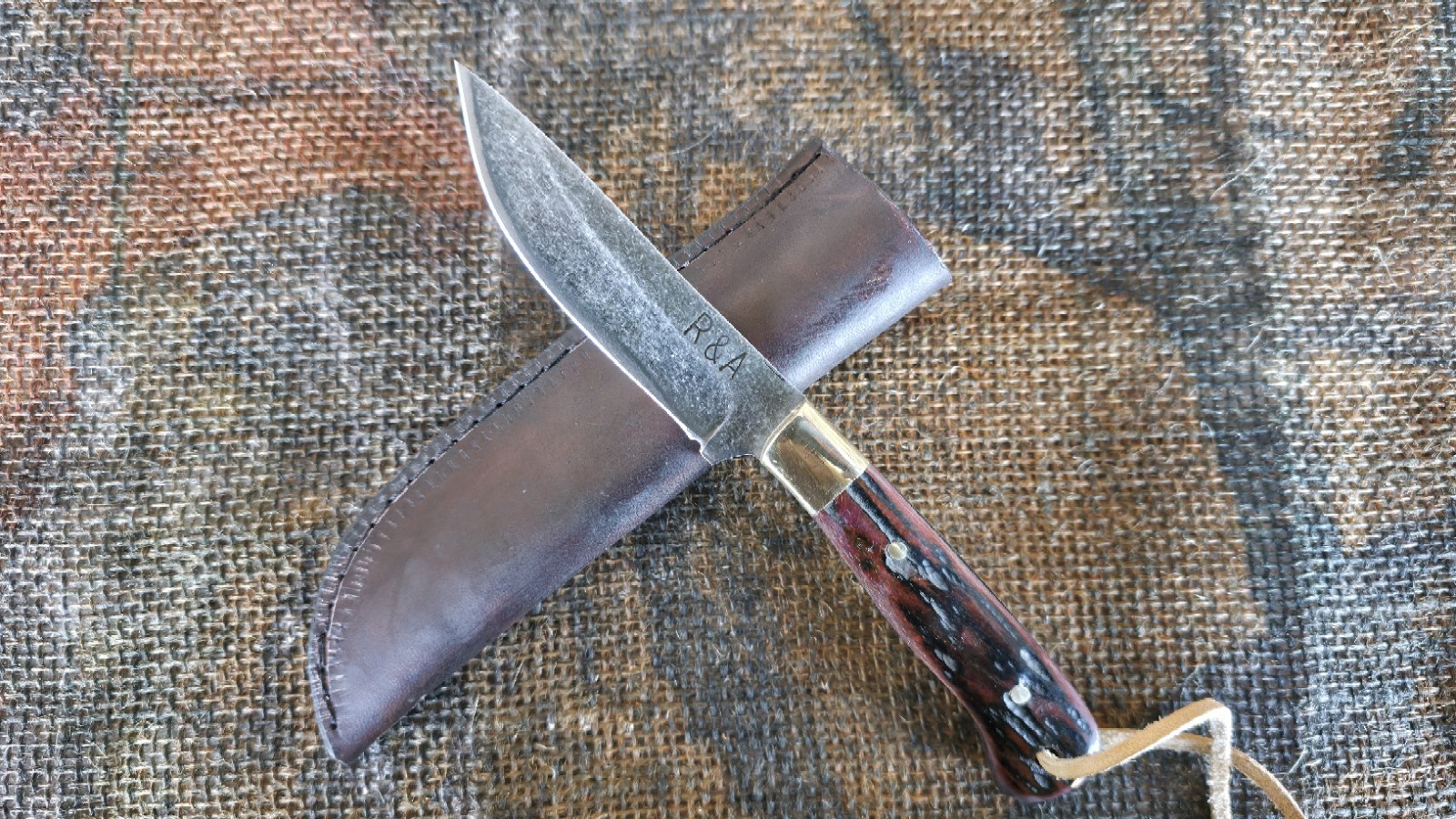The R&A Custom Handmade Knife is a high-quality fixed blade knife made in the USA. This knife features a drop point blade made of durable 8670 carbon steel in a sleek black color. The handle is crafted from camel bone, adding a unique touch to this original hunting knife. With a full tang design and a sheath included, this knife is perfect for collectors and outdoor enthusiasts looking for a reliable and beautifully crafted tool.