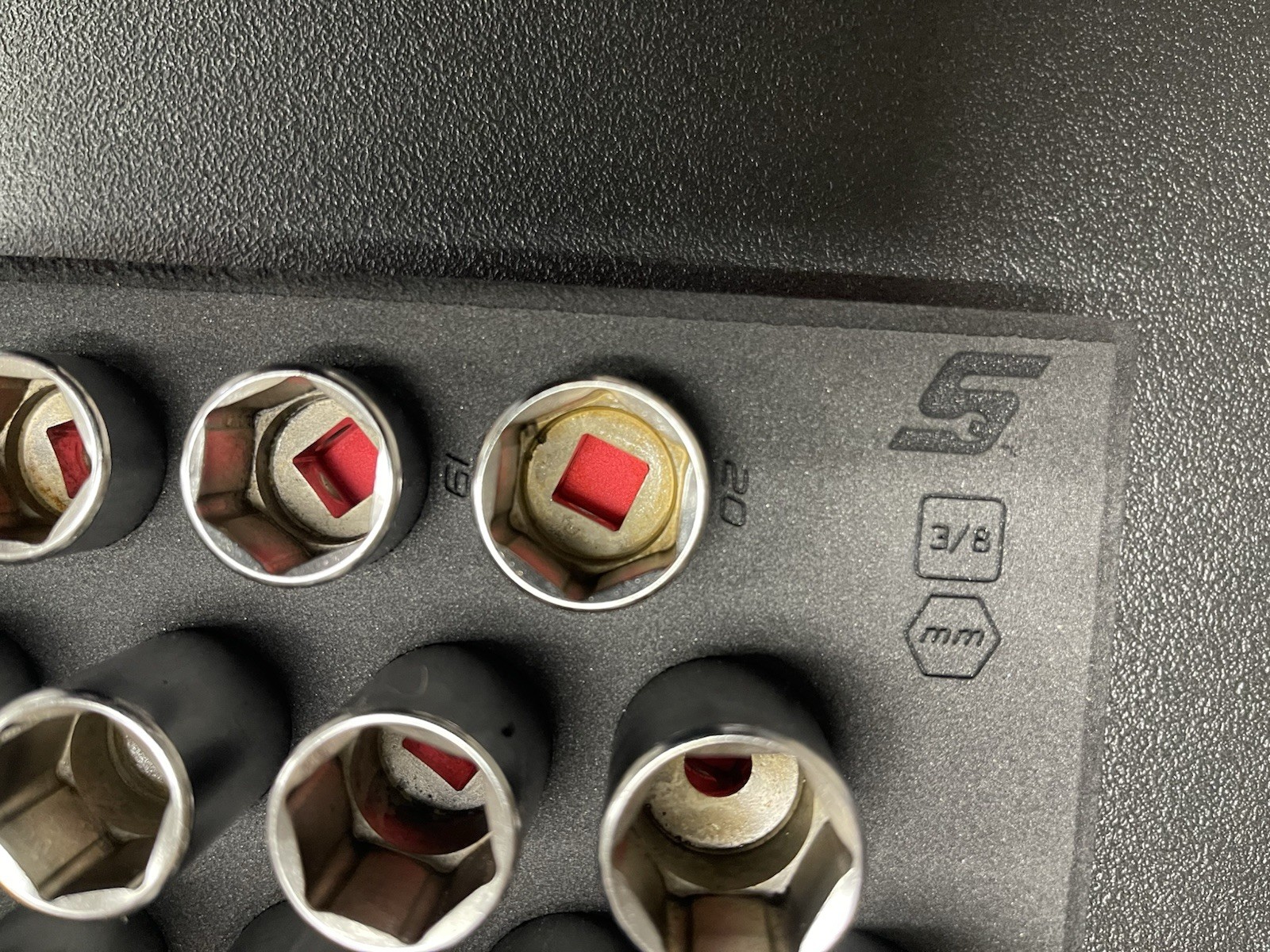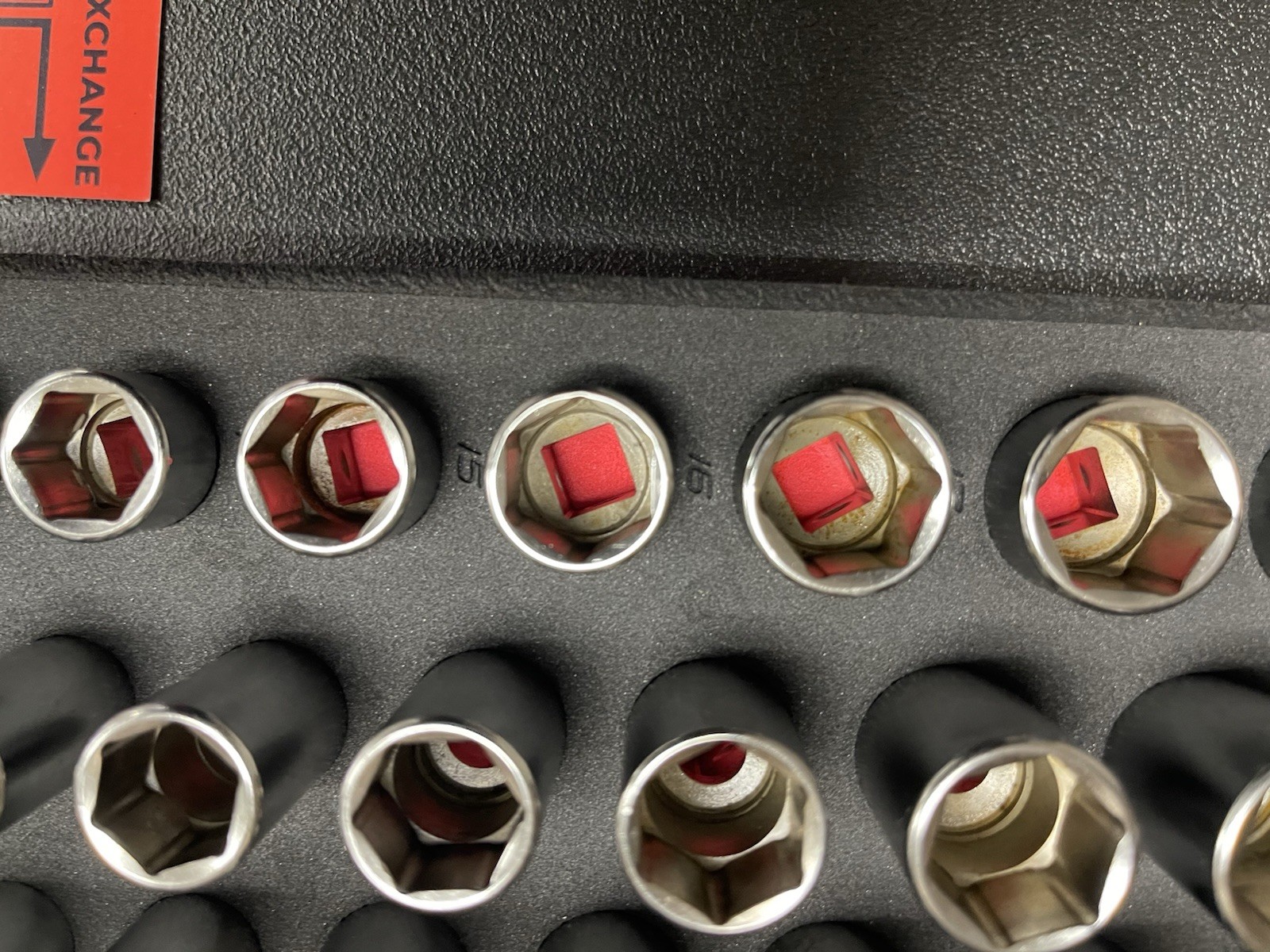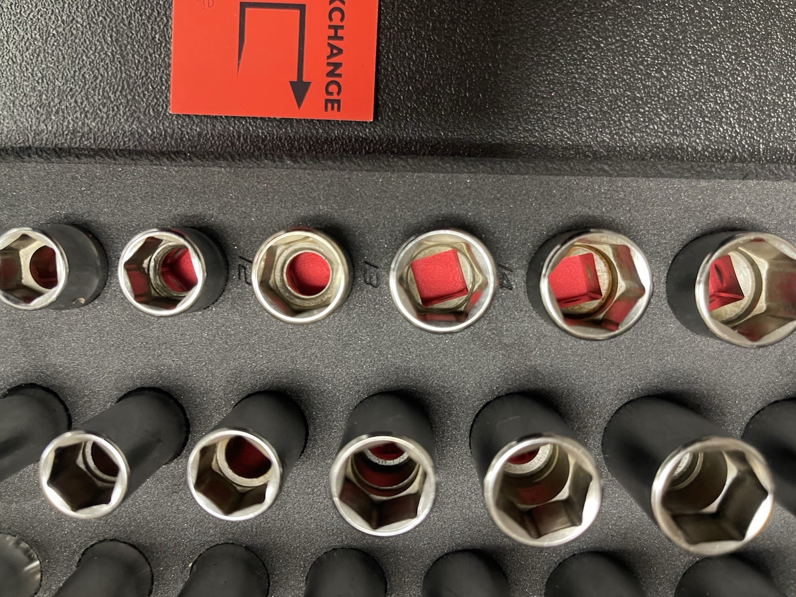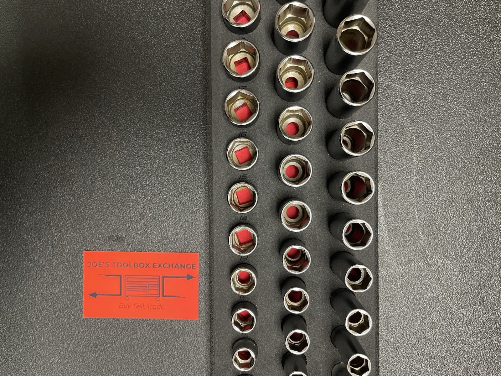 Snap-on 245sfmsfr 45 pc 3/8" drive 6 pt metric flank drive set 6-20mm foam red. Brand new. Never used. Please refer to the photos for reference. All sizes and part numbers are listed below. Thank you.