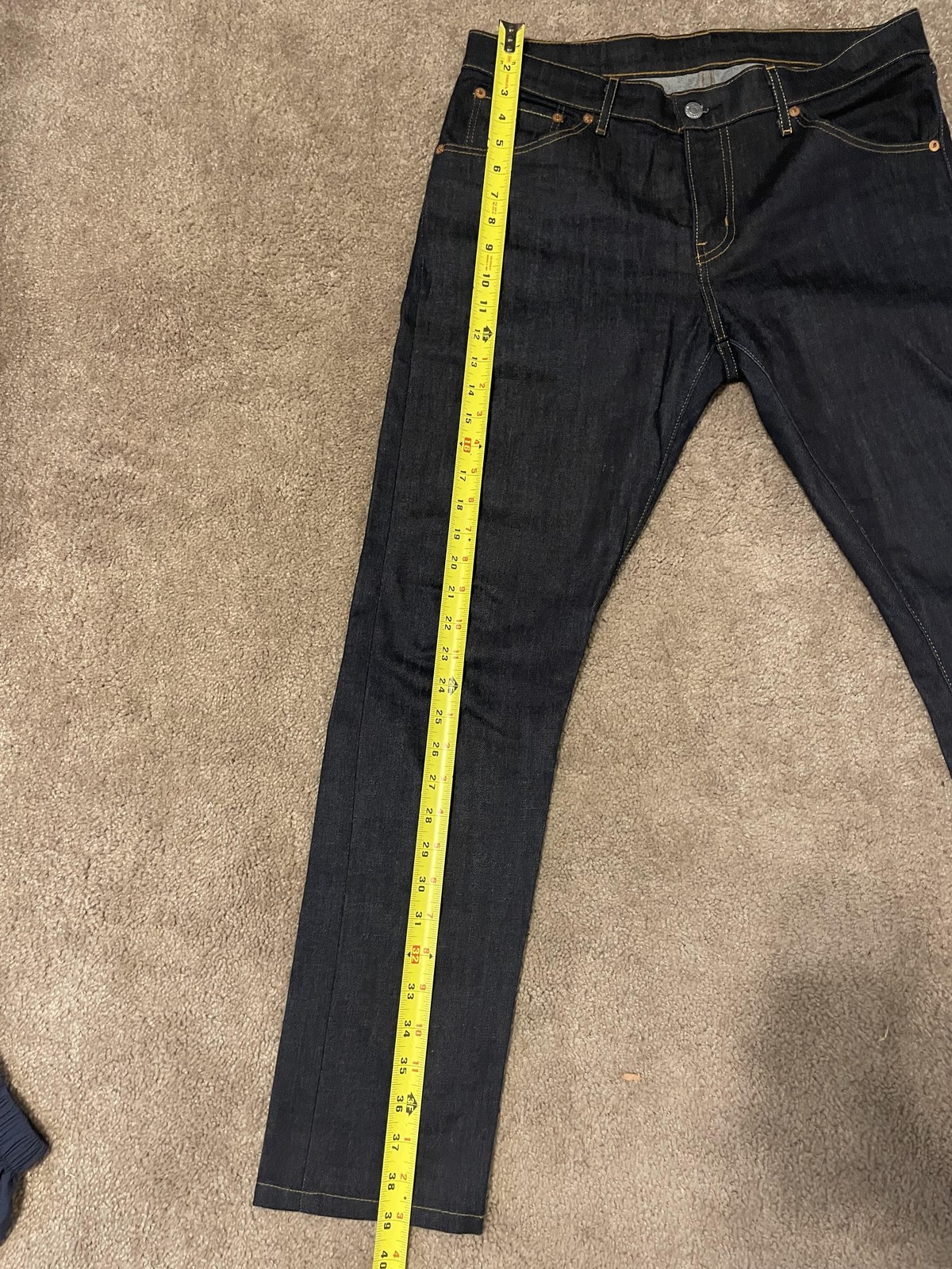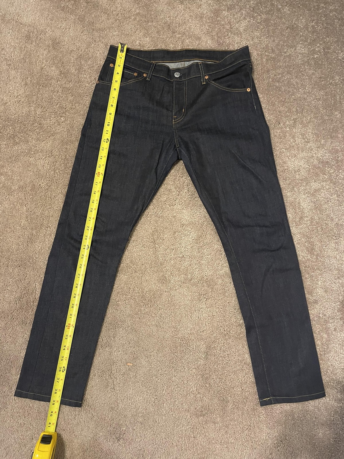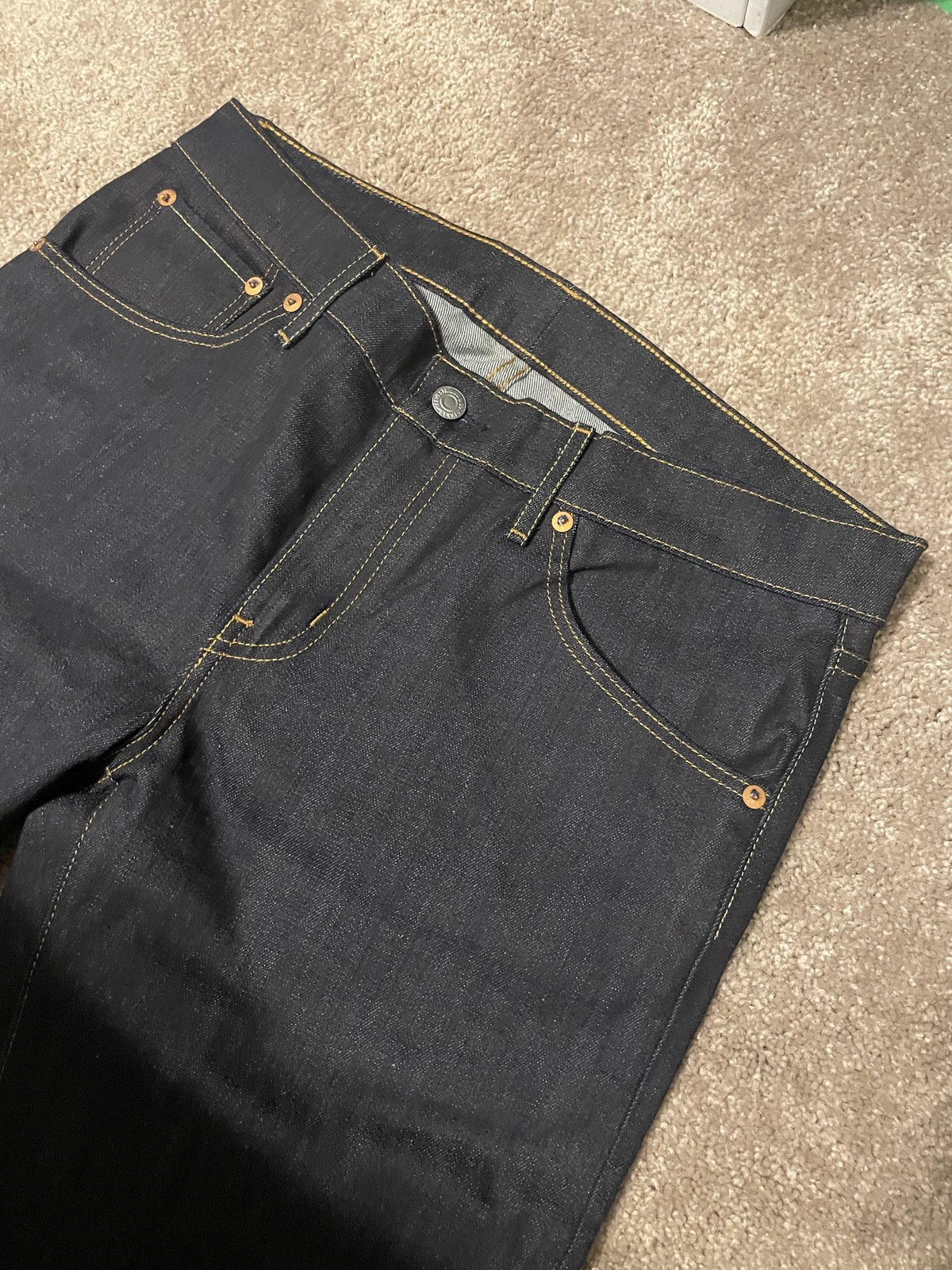 Levis 501 Jeans Mens 34x34 Blue Raw Denim Selvedge Condition: Gently worn, no visible flaws. Denim is crisp, shows minimal to no signs of wear. No stains, holes, or damage. See all photos for details. Made from White Oak Cone Denim, known for superior quality and durability Button fly closure with classic Levi Strauss branded hardware Leather patch with Levi's Two Horse logo at back waist Signature arcuate stitching and red tab branding on back pockets Made in USA, featuring "Made in USA" and "White Oak Cone Denim" inner tags Classic 501 straight leg fit in unwashed raw indigo denim Approximate measured size: 34 inch waist x 34 inch inseam Tag reads: Levis 501 Original Fit Material: 100% cotton selvedge denim Iconic American-made jeans using legacy Cone Mills White Oak fabric Measurements (in photos): - Waist: 17 inches across - Inseam: 34 inches - Front rise: 11.5 inches - Leg opening: approx. 7.5 inches across Style perfect for denim enthusiasts, collectors, or those seeking classic USA-made raw jeans