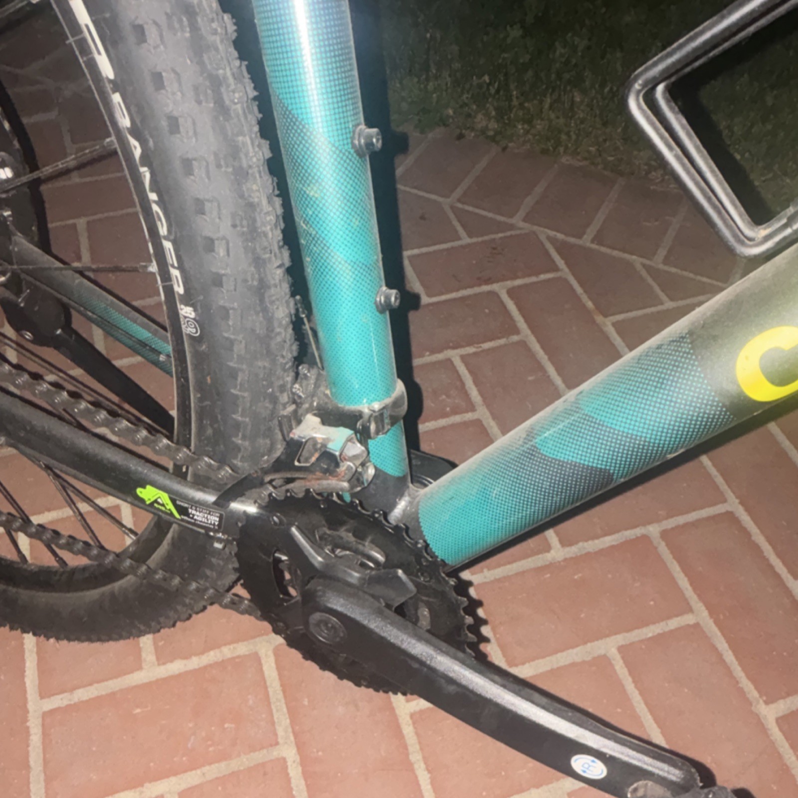 The Cannondale Mountain Bike features a sleek black and green aluminum frame with a flat bar handlebar for a comfortable and sturdy ride. With 29-inch wheels and disc brakes for efficient stopping, this mountain bike is perfect for tackling rugged terrain. The front suspension provides added stability, while the derailleur gears make for smooth gear changes. Complete with a kickstand for convenient parking, this Cannondale bike is a stylish and functional option for any outdoor adventurer.