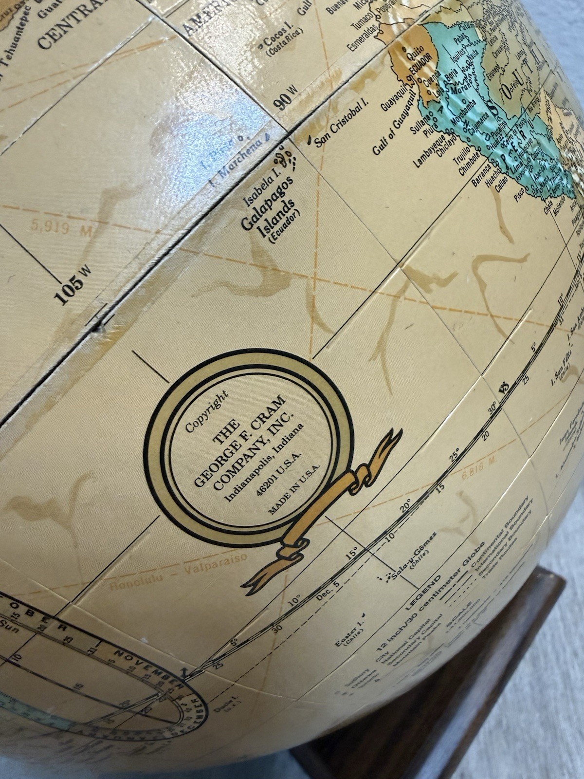 Vge Cram's Imperial World Globe 12” Diameter Wood Base Made in USA, USSR Era