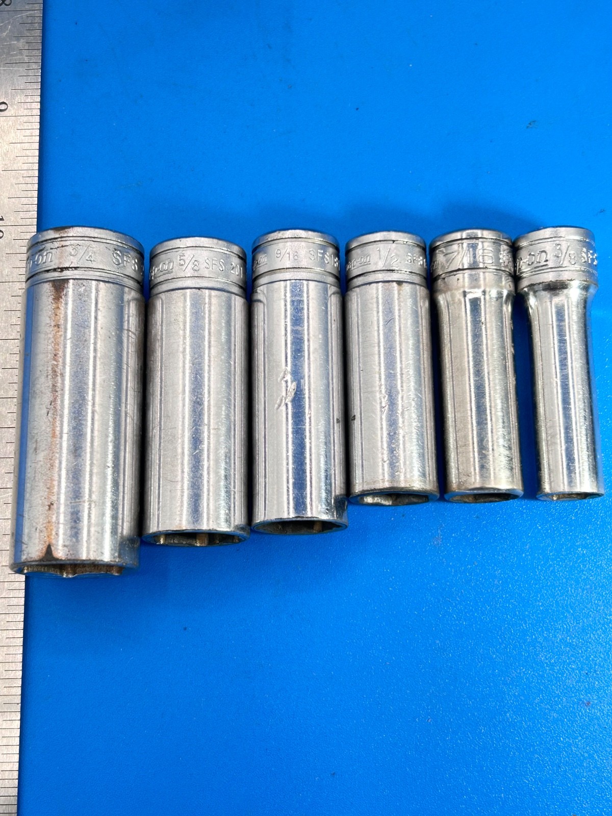 Snap-on Tools Deep Well Socket Set 3/8” Drive 3/8” to 3/4” 6 Point 6 Pieces B-3