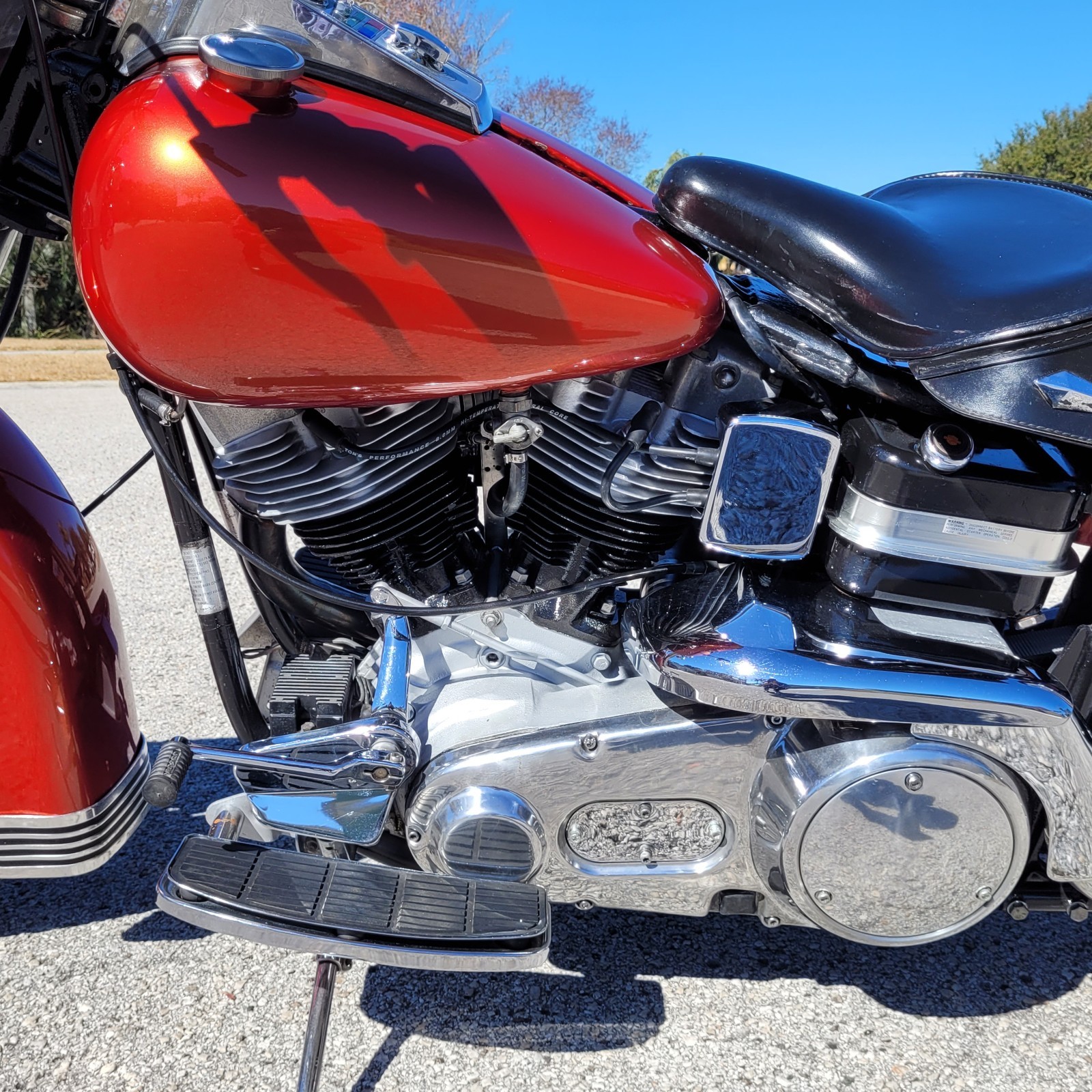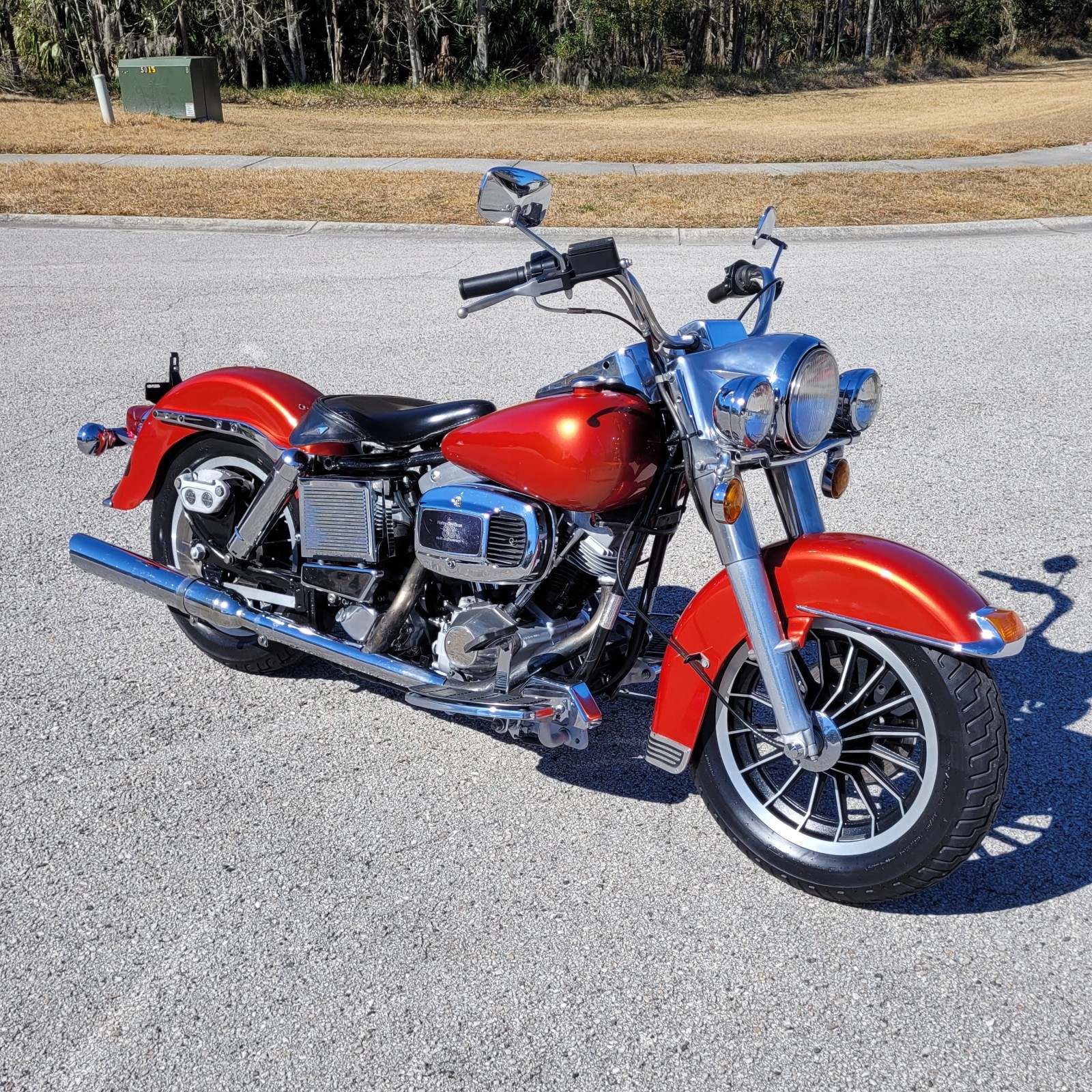 Super Clean 1982 Harley-Davidson Electra-Glide FLH with Rear Belt-Drive in great overall condition. This near original motorcycle starts right up, runs very strong and shifts right. Electrical systems functions correctly with all lights working perfect throughout! The Gas Tanks and Fenders are in great condition with no dents or damage, some lite scratches. Bike has a rebuilt S&S Carburetor with the original Hamcan Air Cleaner. A complete Oil Change service was just performed with a complete oil tank flush, completely cleaned and replaced all oil lines with factory clamps. A New Battery, Spark Plugs and Plug Wires were installed. Tires are like new as are the brakes. Original stamped Solo Seat with T-Bar (no pogo post). Includes a Set of Saddlebags with Guard Rails and a Batwing Fairing (has scratches). Please make sure shipper can haul these parts, will not install on the bike thank-you. Needs a couple heat shields, currently looking for a set. I believe original miles are approx. 15k. speedometer is a replacement. What a fun bike to ride, no junk!!! Clear Florida Title. Questions: 813-245-3409 text best.