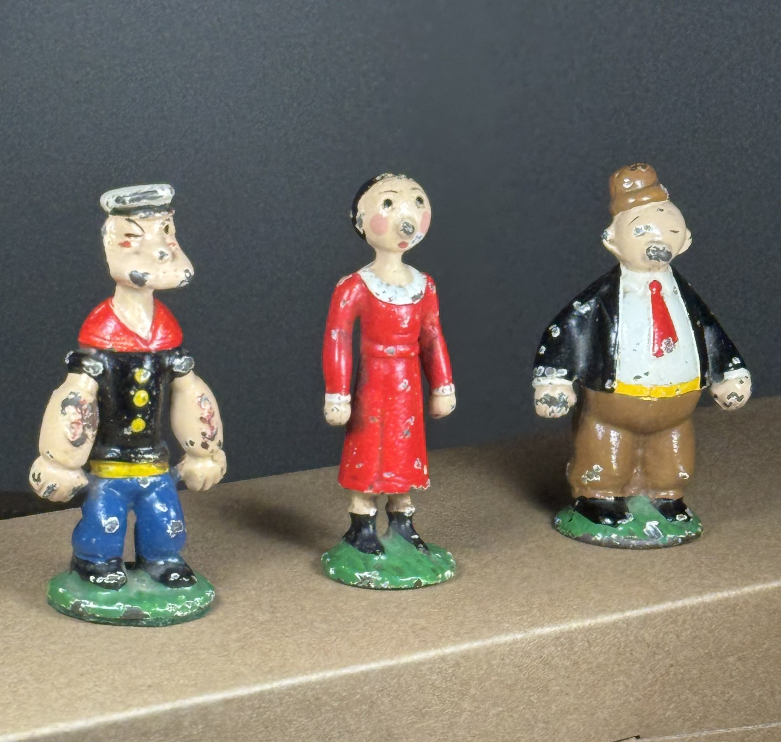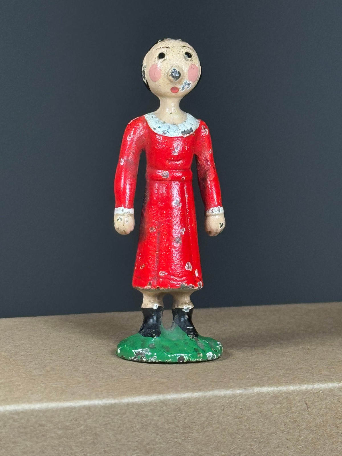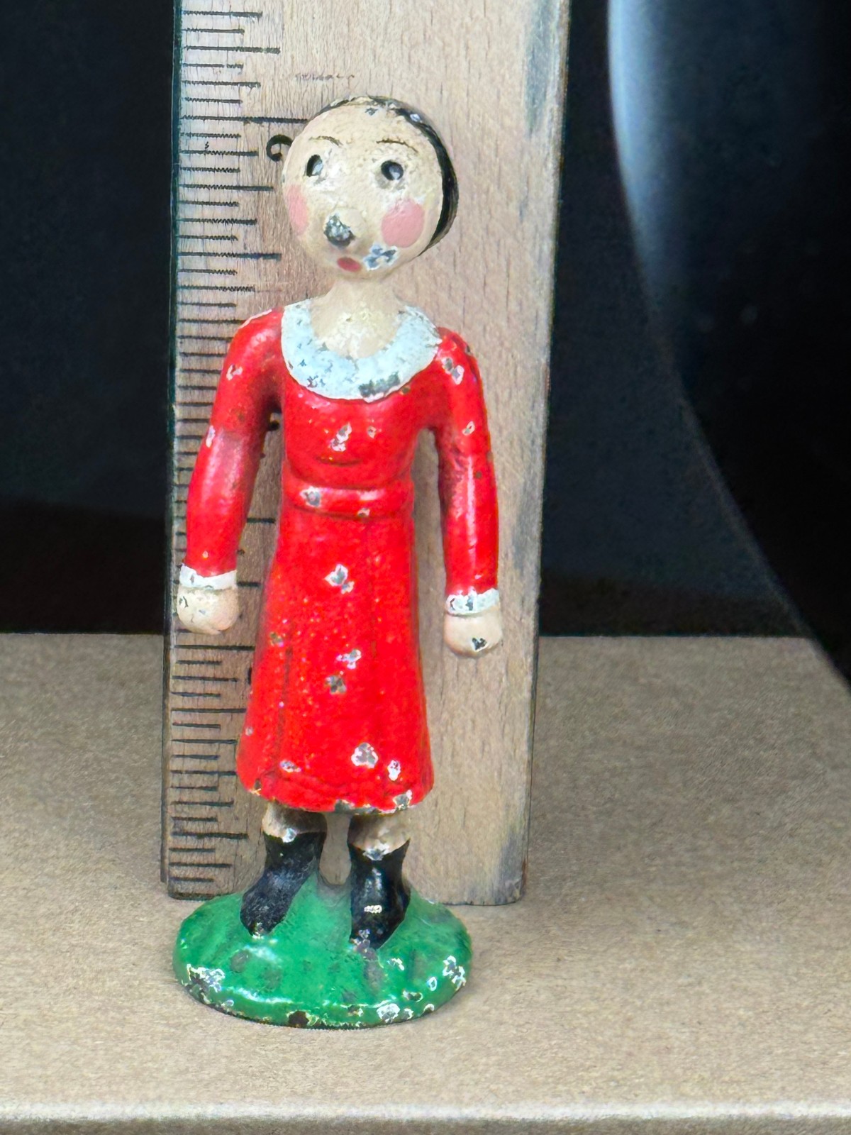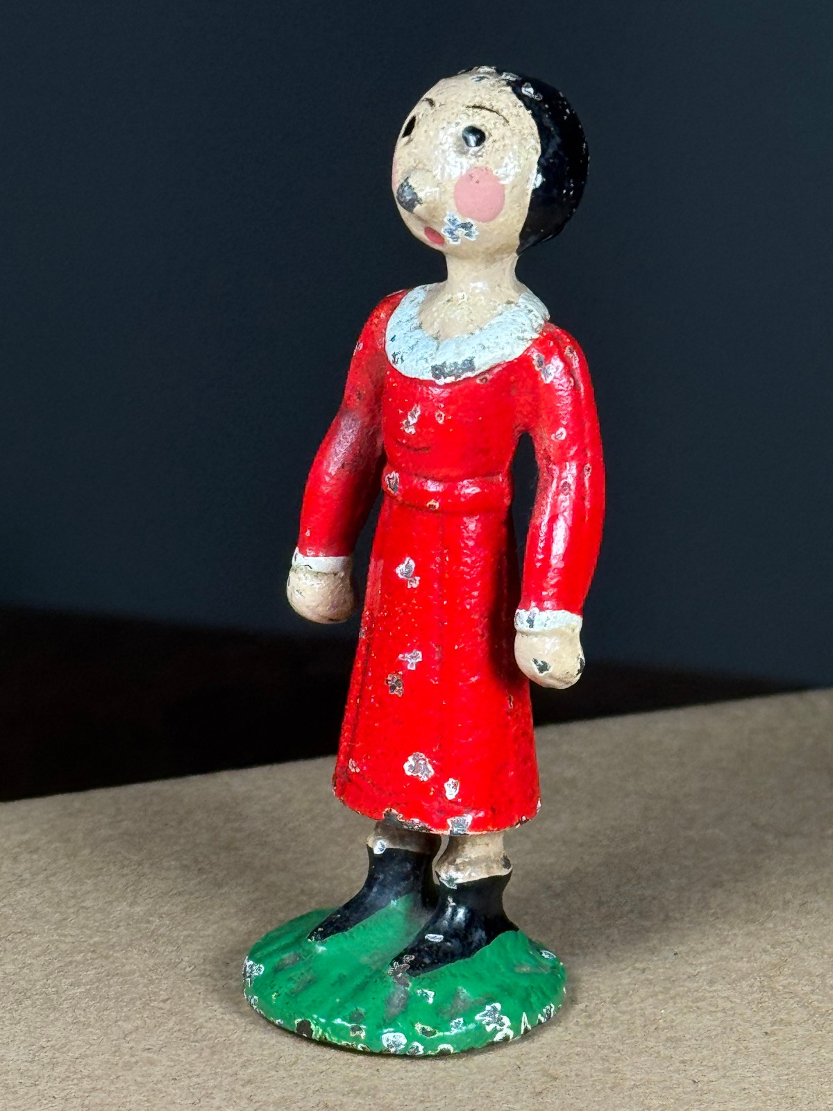 iron paperweight of a Olive Oil figure from the Popeye cartoons with the