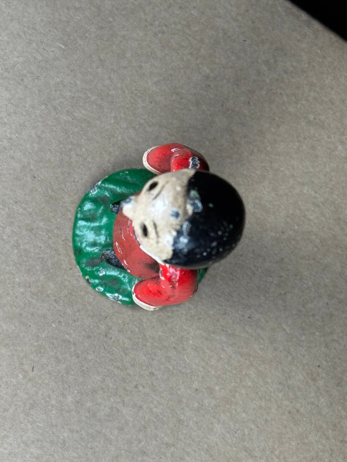 solid cast iron construction of our Olive Oil Paperweight. There is only minor paint damage for her age