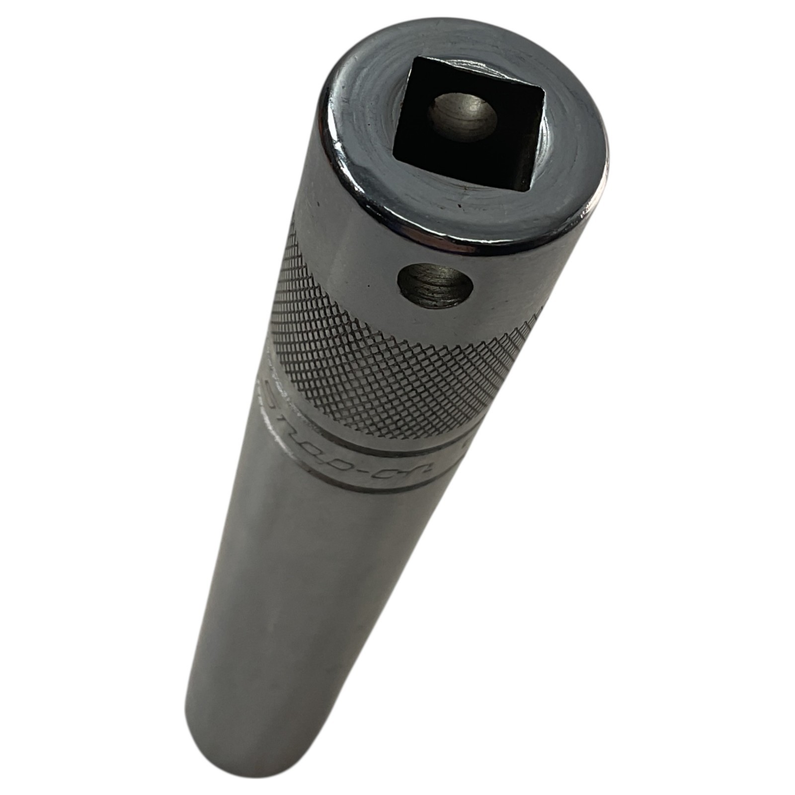 • Snap On, S9720K, 3/8 drive spark plug socket, 5/8 SAE socket, extra deep plug socket, knurled chrome socket, USA made tool, mechanic tool