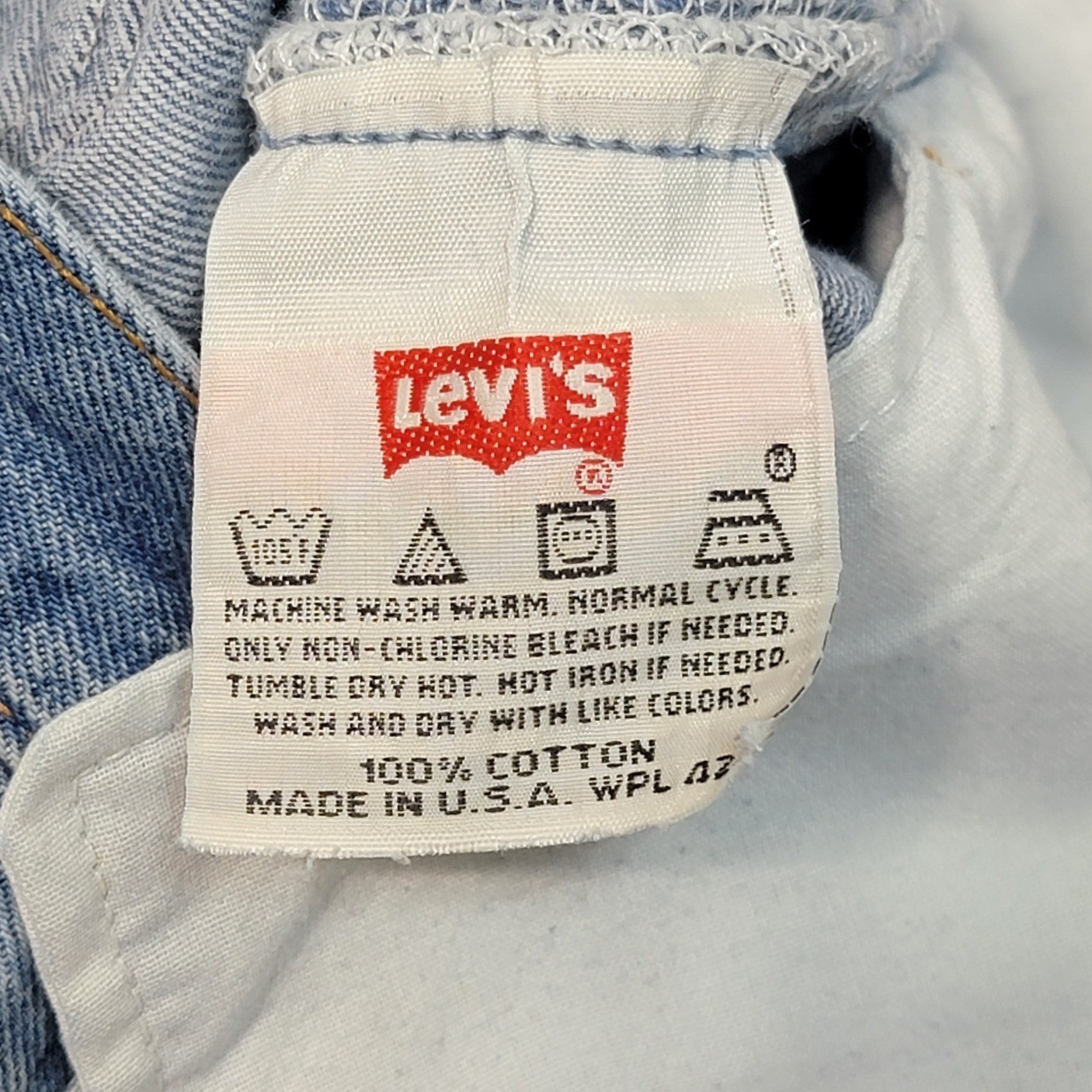 Vintage Levi's 501 jeans in a classic light wash blue denim. These iconic straight leg jeans feature the signature button fly, five-pocket styling, and the recognizable red tab and leather back patch. Crafted from 100% cotton in the USA, they offer a timeless silhouette with a mid-to-high rise.