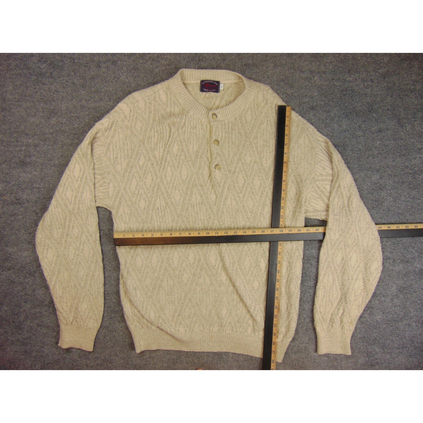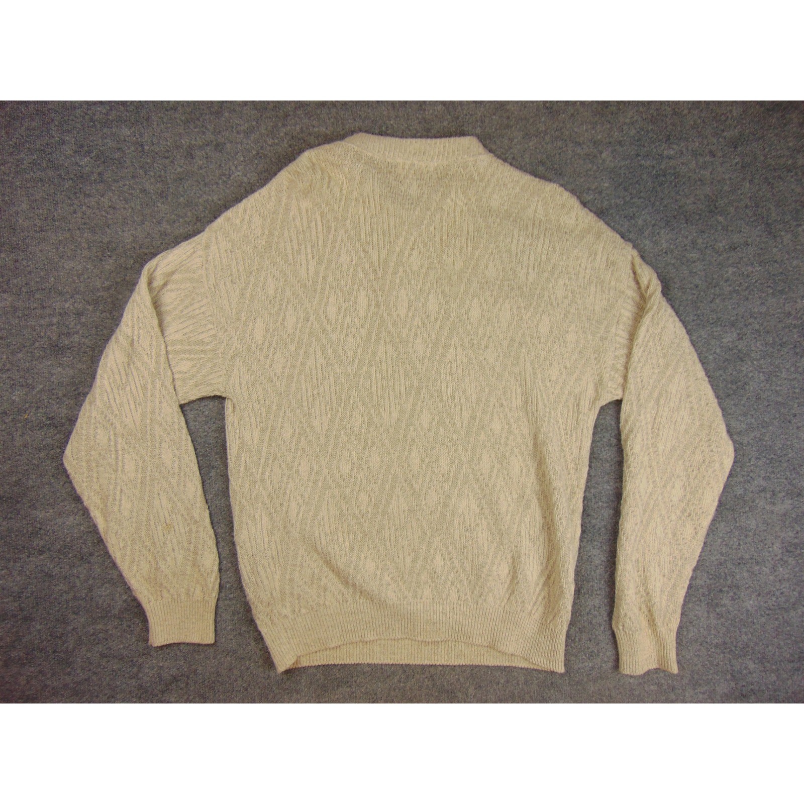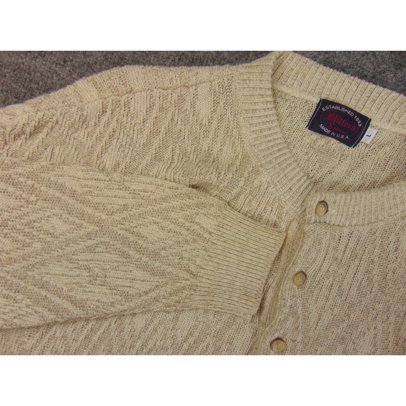 Milford Sportswear Mens Large Beige Texture Knit Button Neck Sweater Made in USA