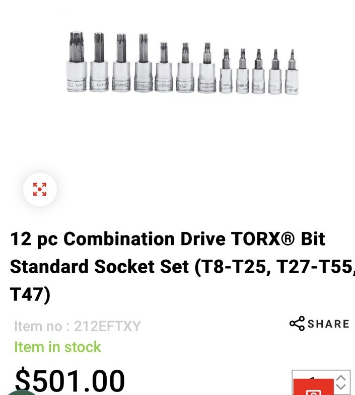 Snap-on Tools 12-Piece Torx Bit Socket Driver Set 212eftxy New (Retail 500.00 )