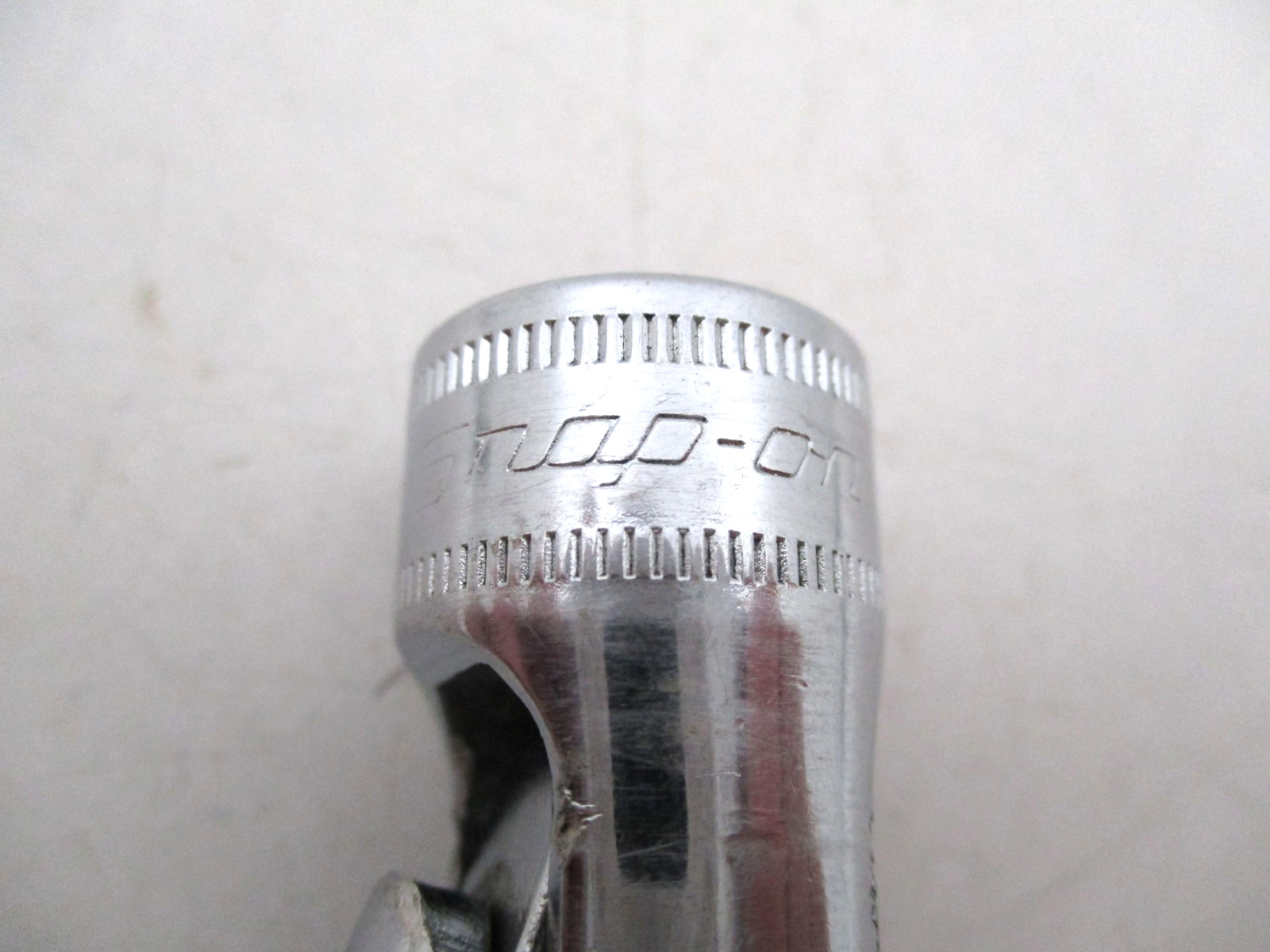 Good condition. The chrome finish is in good shape. The flex joint is sung. No owner's markings. It has a modern style Snap-On logo. Part numbers and size follow:
