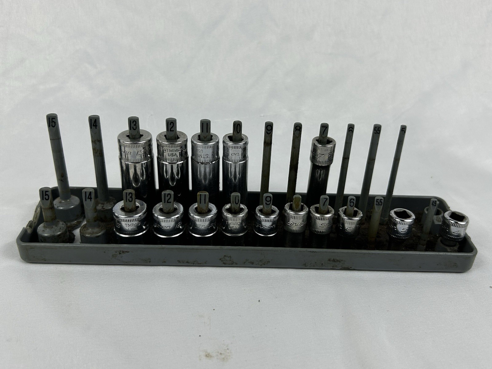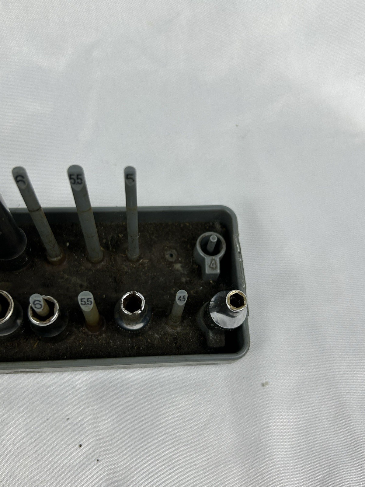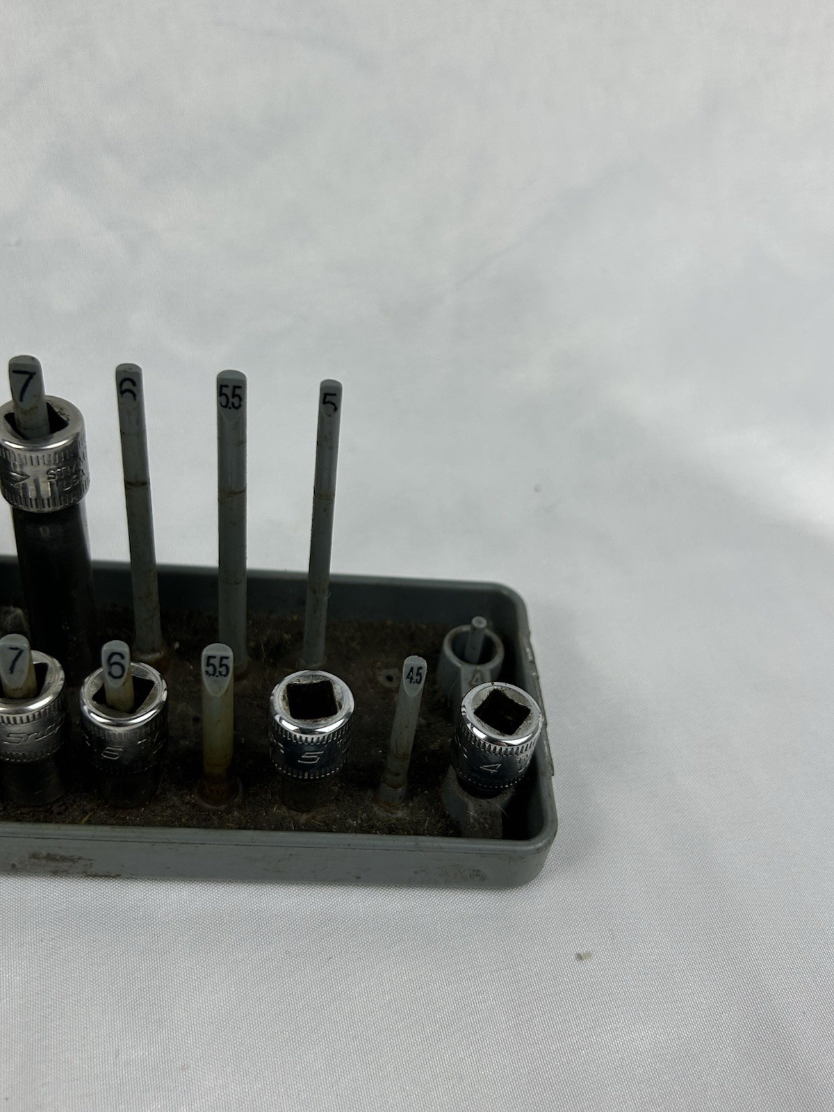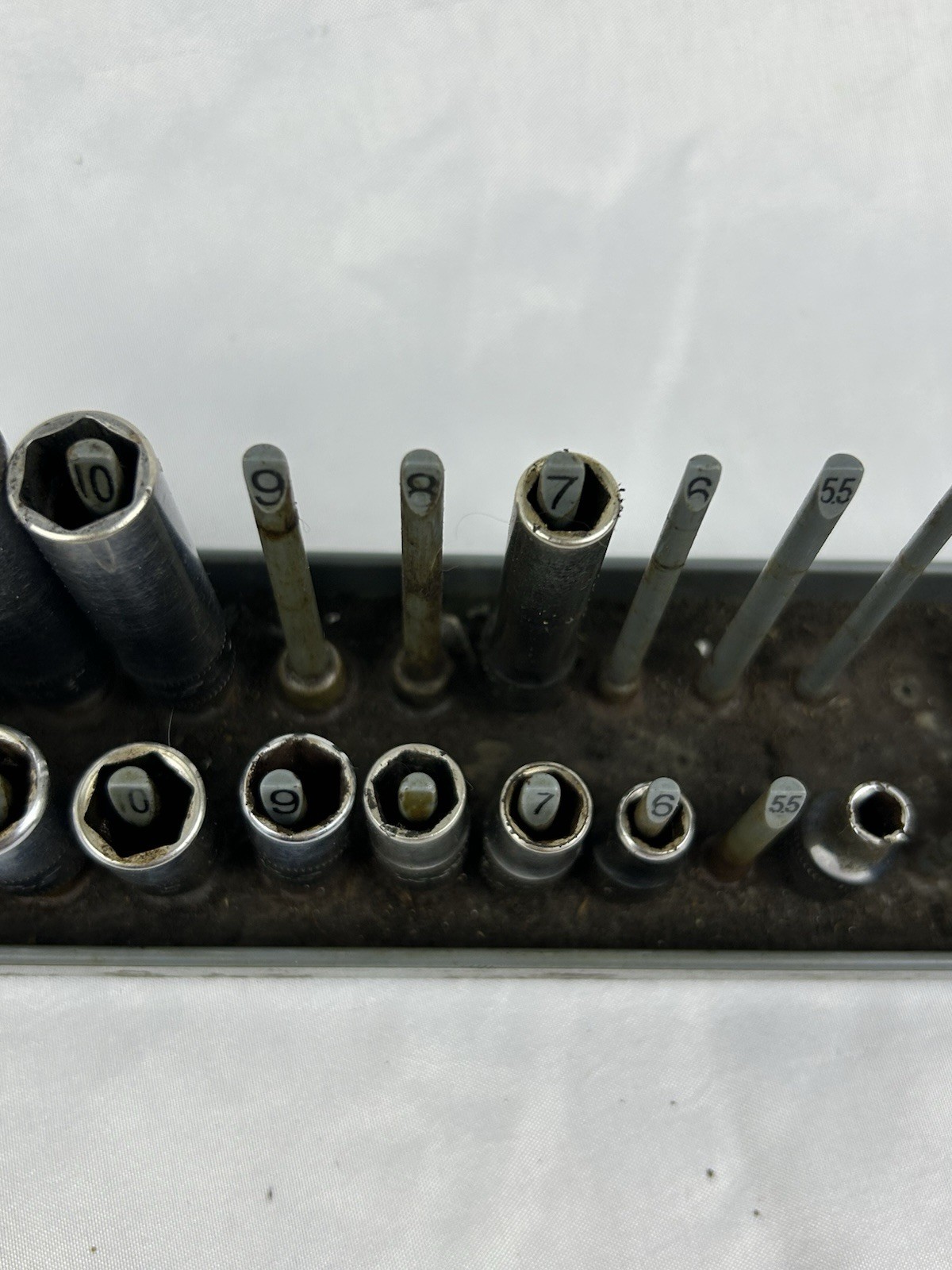 The socket set is in good used shape and shows some scratches and blemishes due to wear and tear. The socket rail IS NOT included in the sale and used for just display purposes only. Please look over all the pictures prior to purchasing as the item in the pictures is what you be receiving.