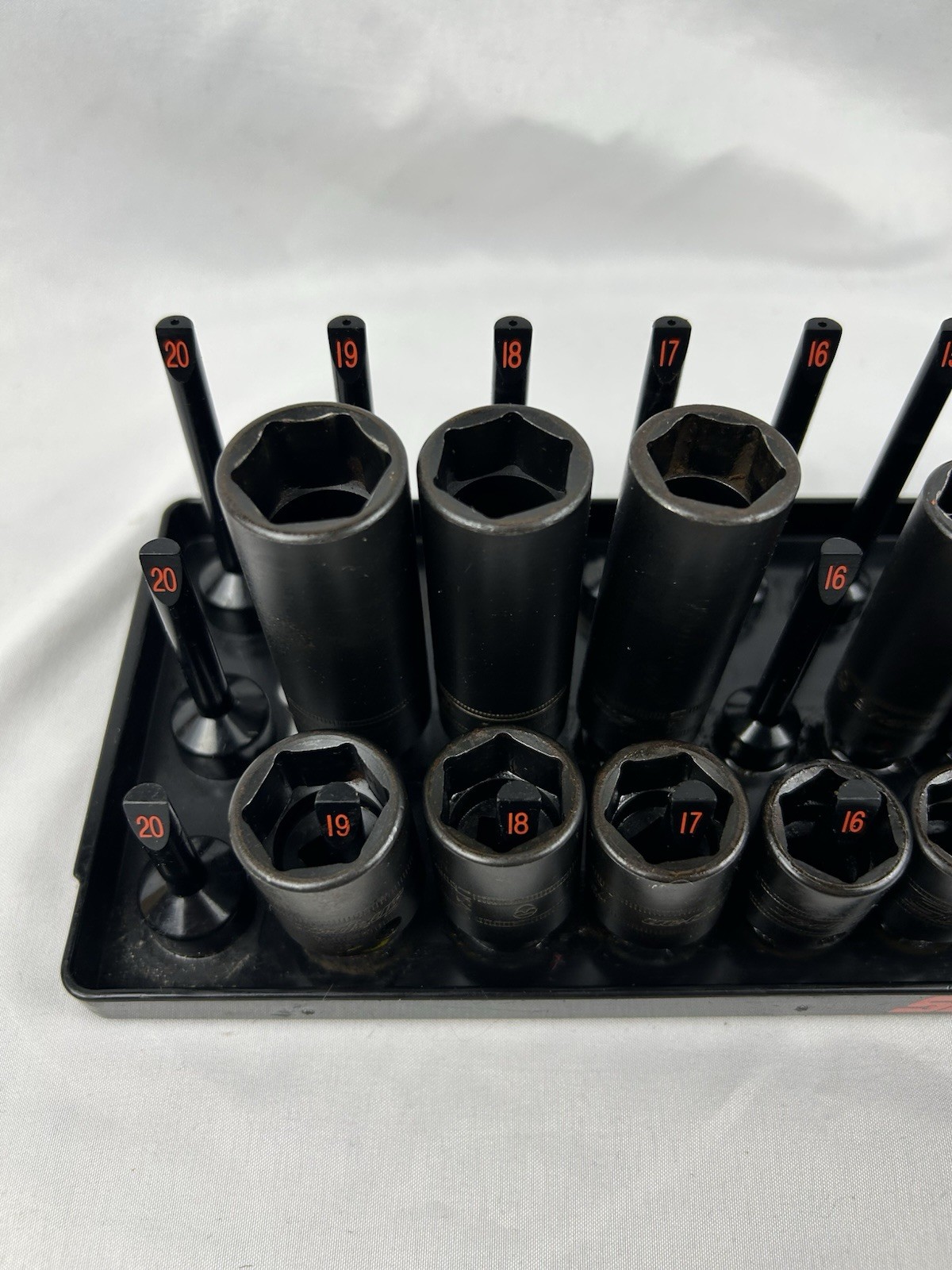 Snap-On Metric Deep/shallow Impact Socket Set 3/8" 22pc 8mm-19mm With 3 Row Tray