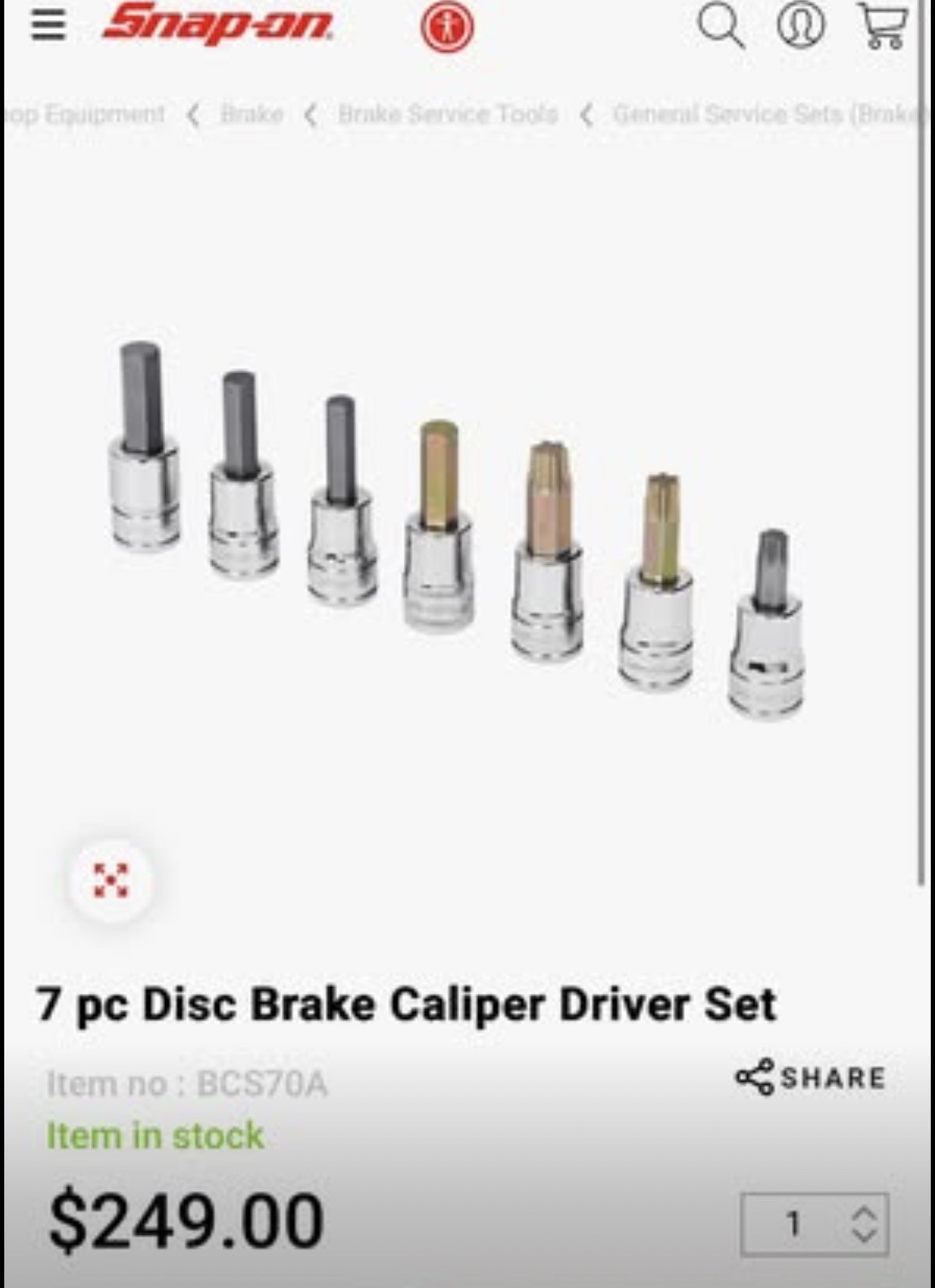 SNAP ON TOOLS USA 7pc 3/8" Drive Disc Brake Caliper Driver Set BCS70A