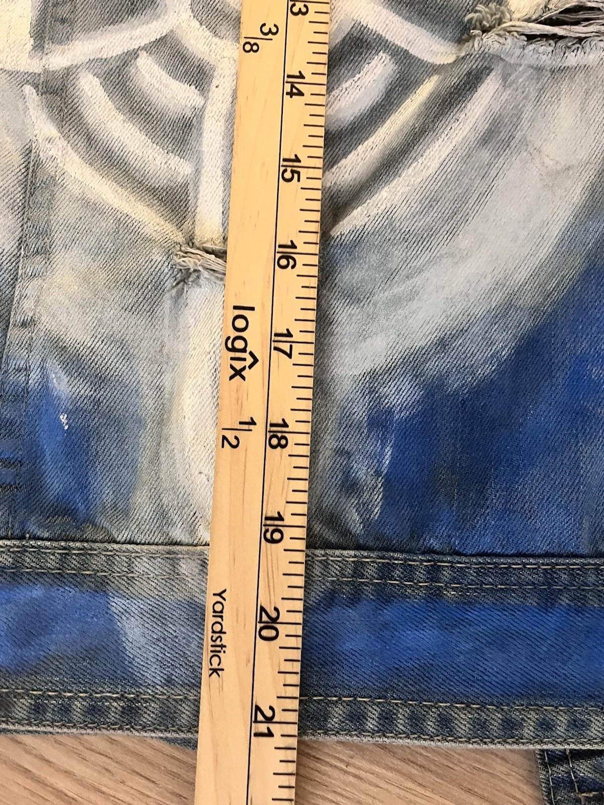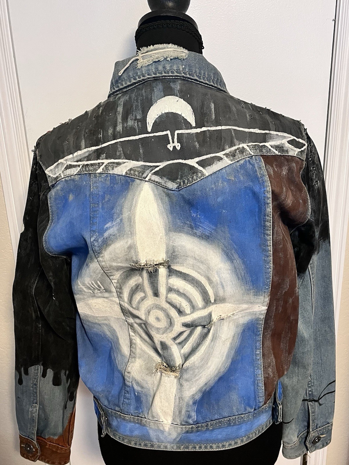 Upcycled Jean Jacket Woman Small Hand Painted Thrashed Grunge