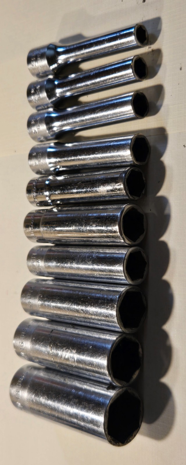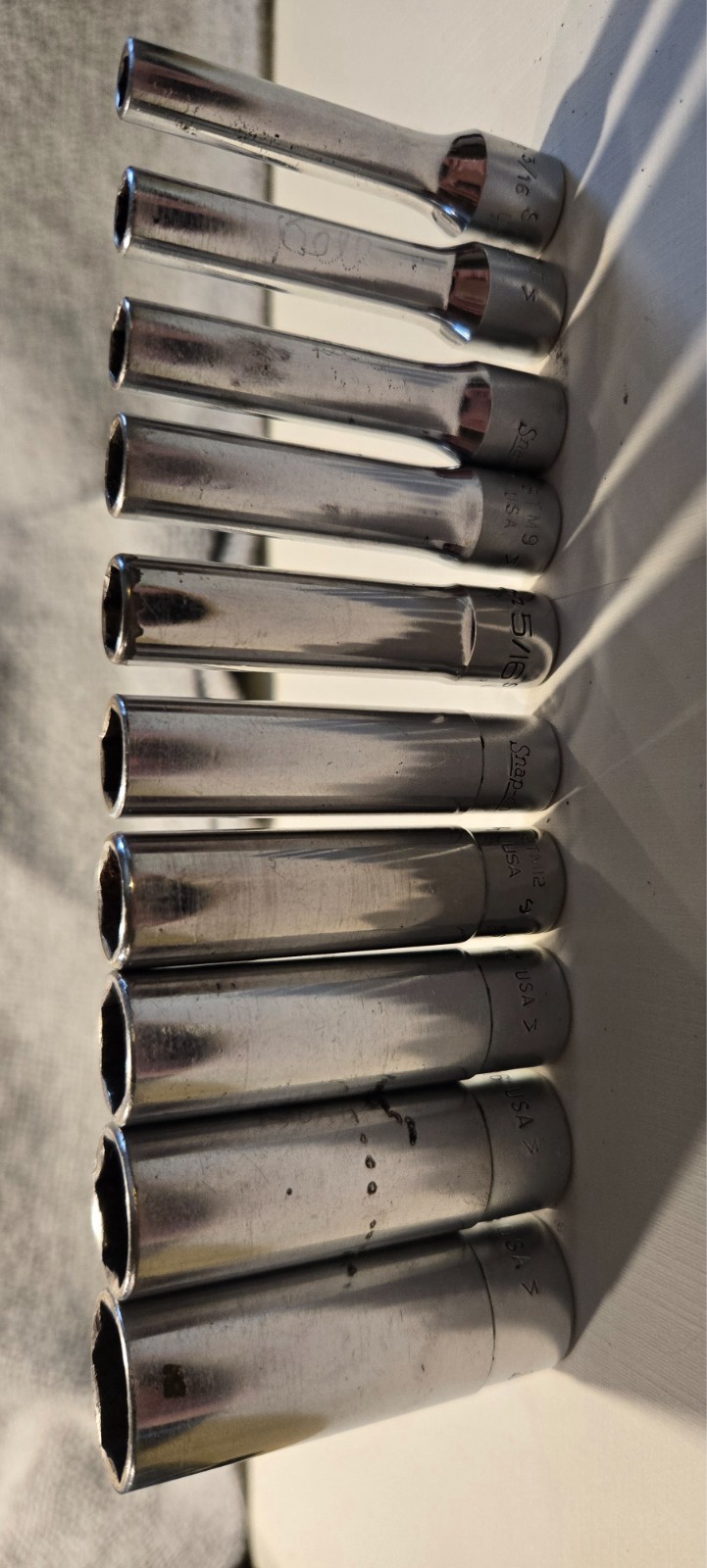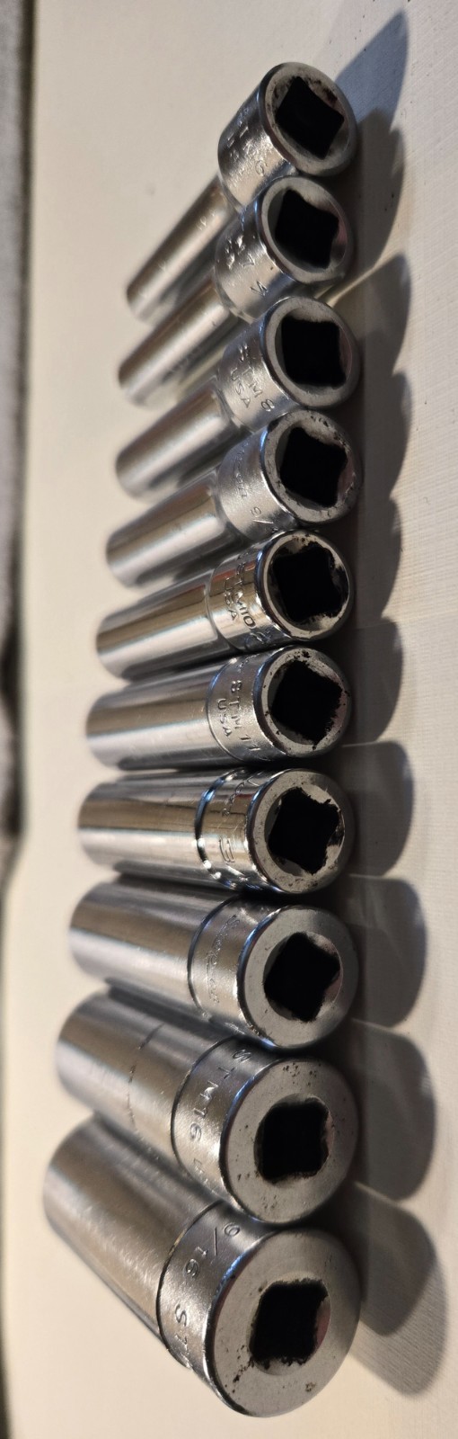 Snap On 110STMY 1/4" Drive 6pt SAE Flank Drive Deep Socket 3/16-9/16:, 10 pc set