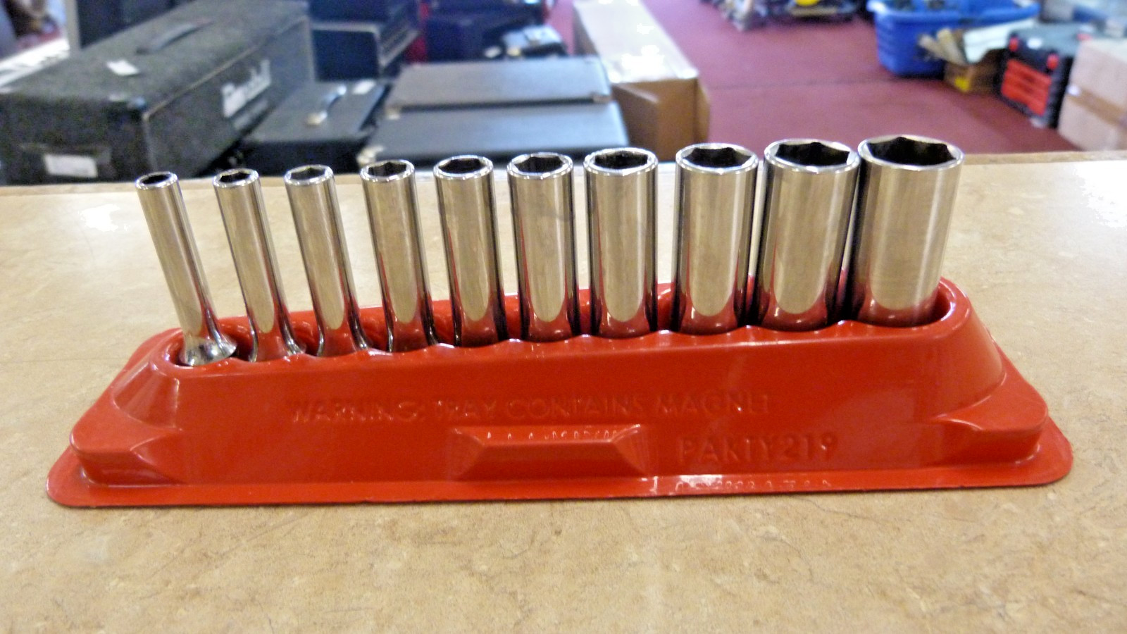Snap-on 110STMY Standard Deep Socket Set + Red Magnetic Tray 10 PC 1/4 Drive