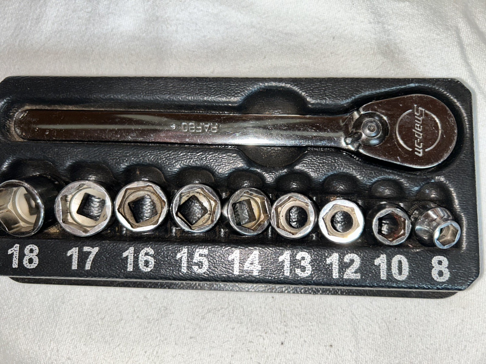 Snap On tools 9 Piece Low Profile Socek Set with 80RAF slim ratchet 8mm-18mm